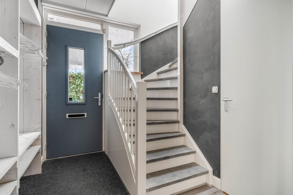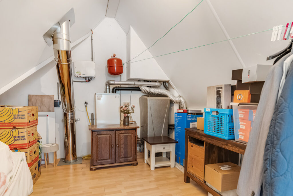 via vaste trap naar zolder met bergruimte.