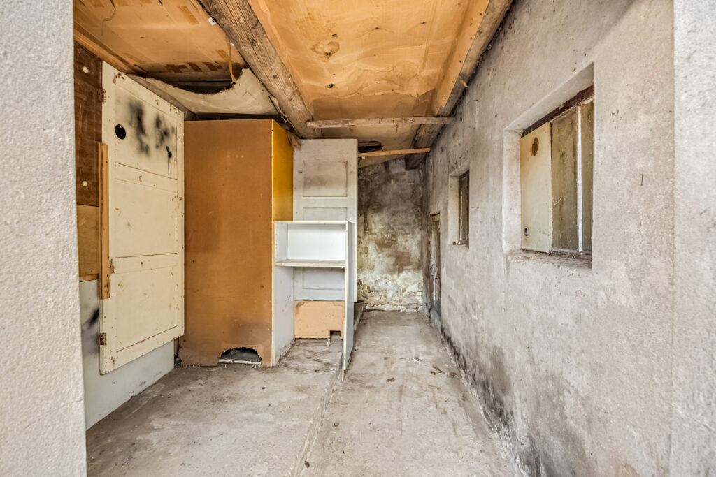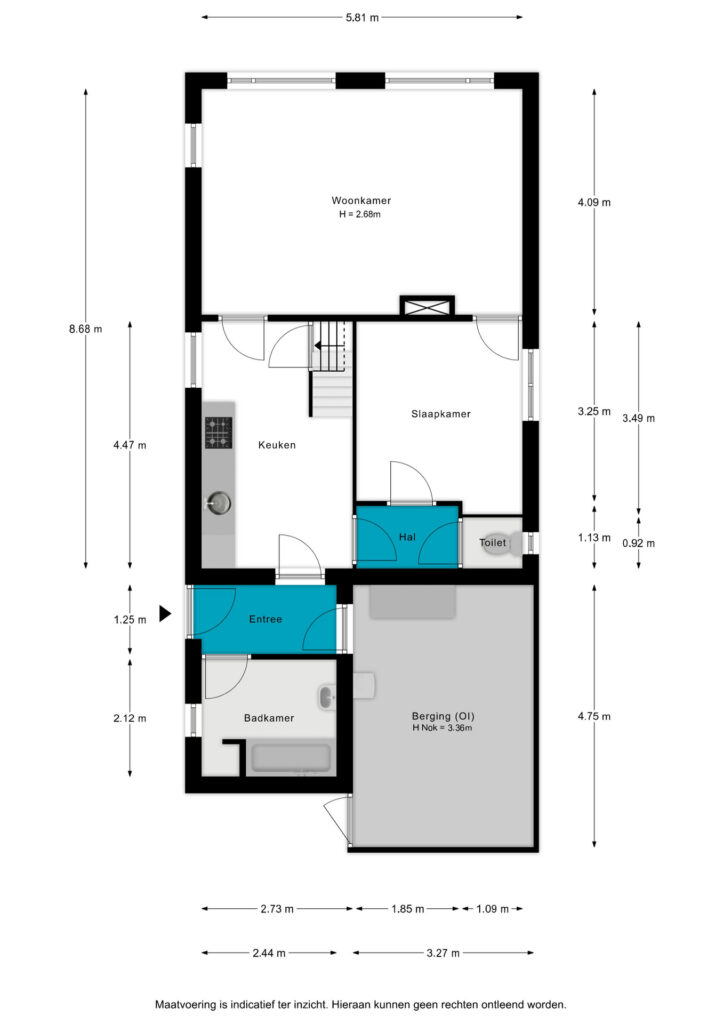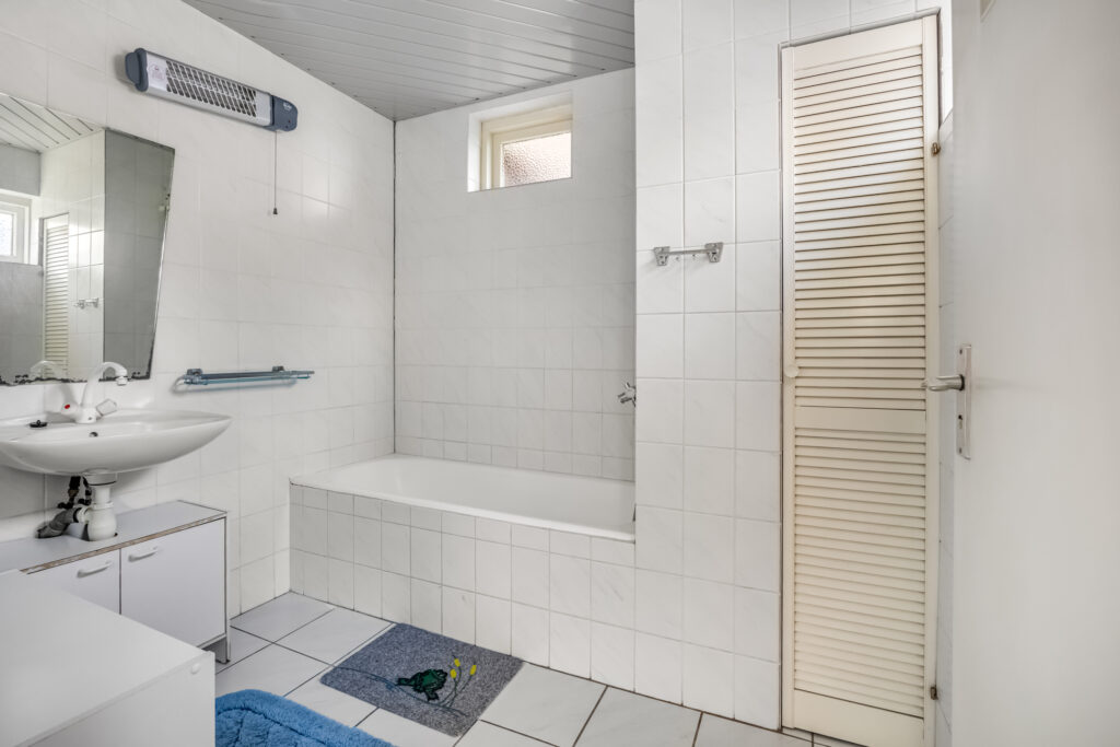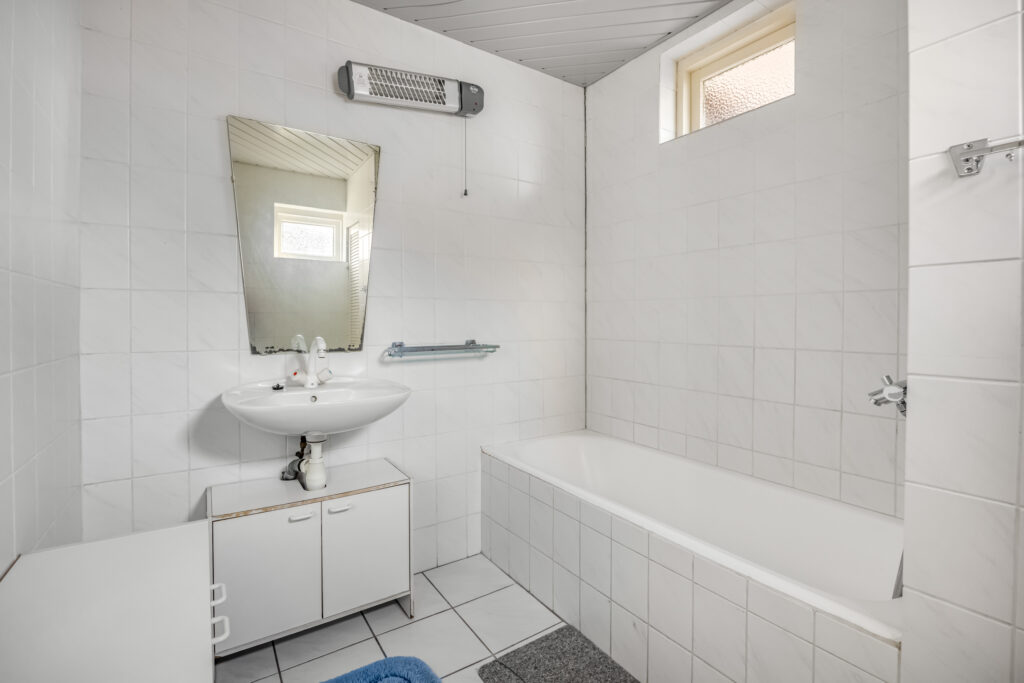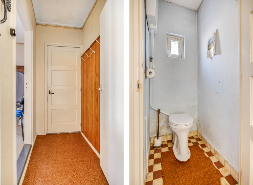entree, hal, badkamer met ligbad en vaste wastafel, toilet. Eenvoudige keuken. Ook bevindt zich hier een slaapkamer.