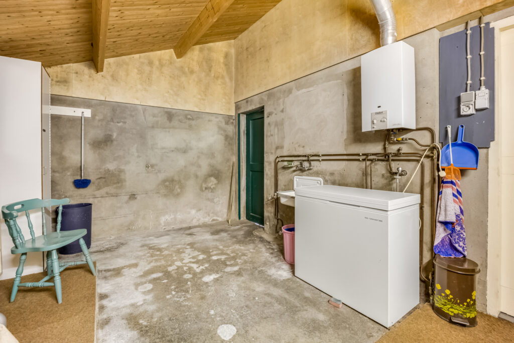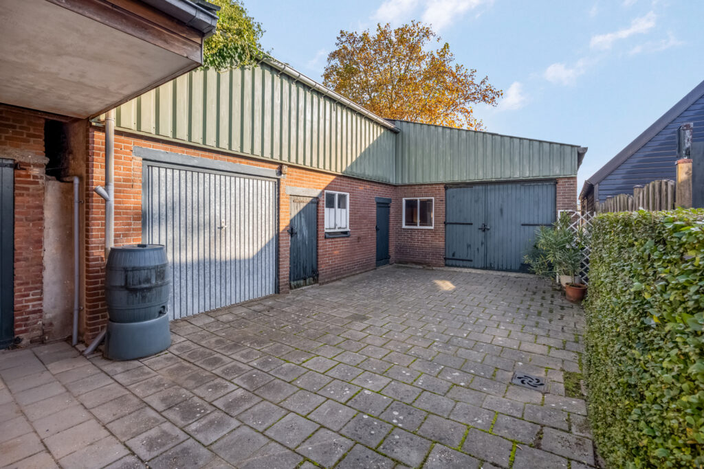 Tuin: aan de voorzijde brengt de oprit u naar de garage alsmede een ruime werkplaats / voormalig stal. Deze ruimte is uitermate geschikt als werkplaats, berging, hobby ruimte. Lekker multifunctionele ruimte dus!