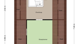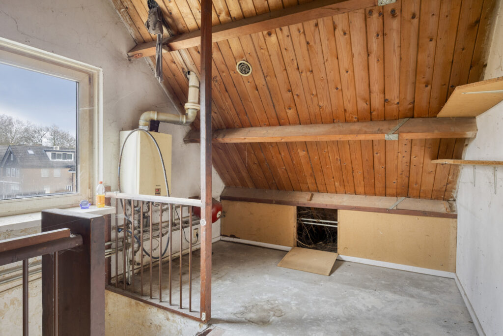 De tweede verdieping biedt nog meer kansen: een slaapkamer met radiator en een voorkamer/overloop met de cv-installatie en omvormer voor de zonnepanelen. Ook hier zijn kunststof kozijnen met HR glas aanwezig.
