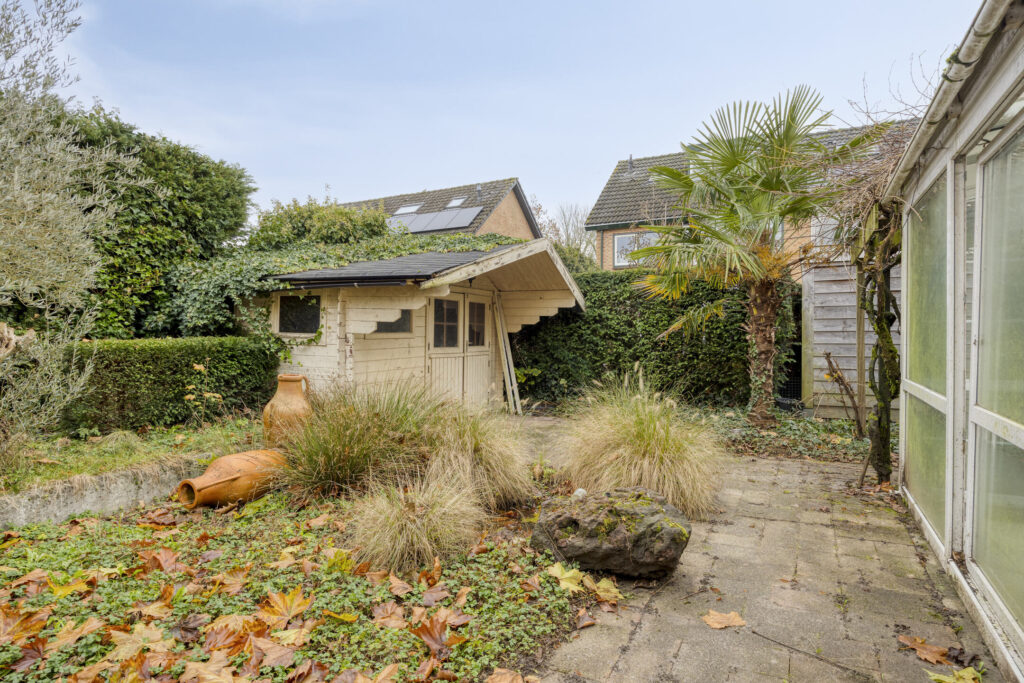 In de tuin is heel veel groen aanwezig en biedt een mooie ruimte om jouw eigen tuin te realiseren. Genoeg ruimte om er jouw droomtuin van te maken. De tuin beschikt over een vrijstaande schuur en een garage. Hier is ruimte genoeg voor fietsen, tuinspullen of eventuele hobby’s.