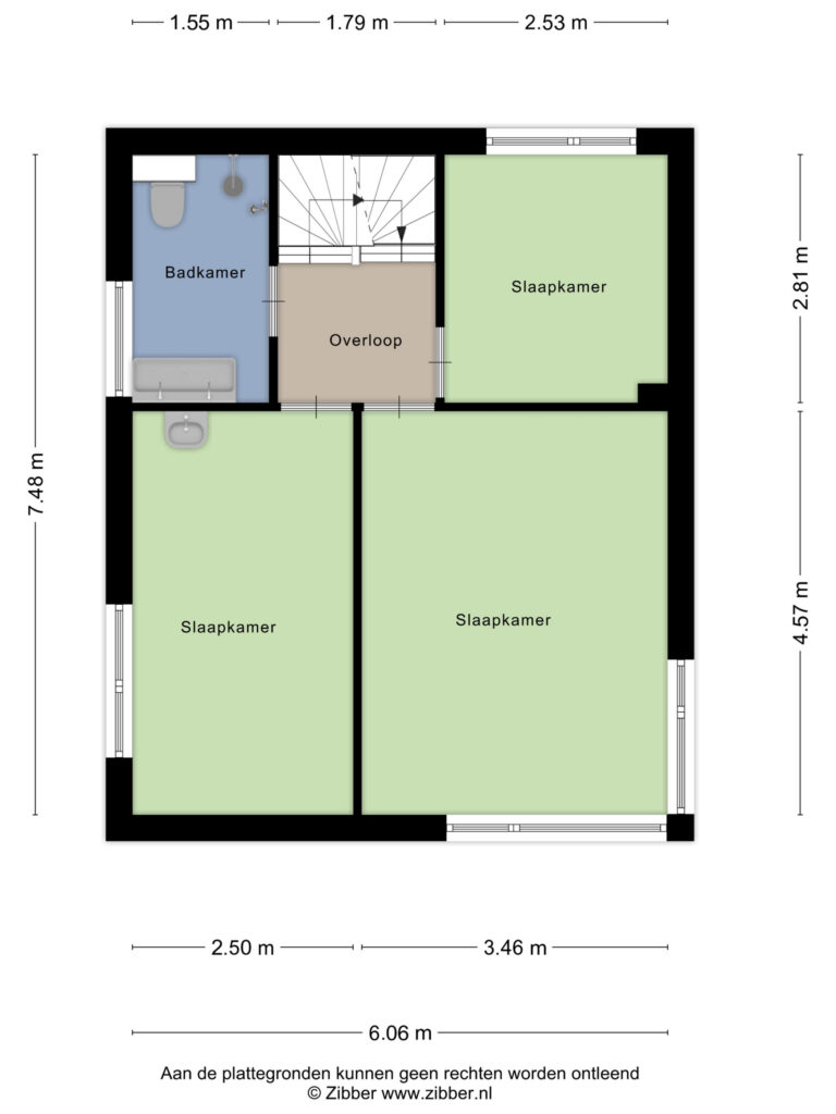 Op de eerste verdieping zijn drie slaapkamers, waarvan één aan de achterzijde en twee aan de voorzijde. De kunststof kozijnen met HR dubbel glas zorgen voor goede isolatie. De badkamer beschikt over een douche, vaste wastafel en toilet.
