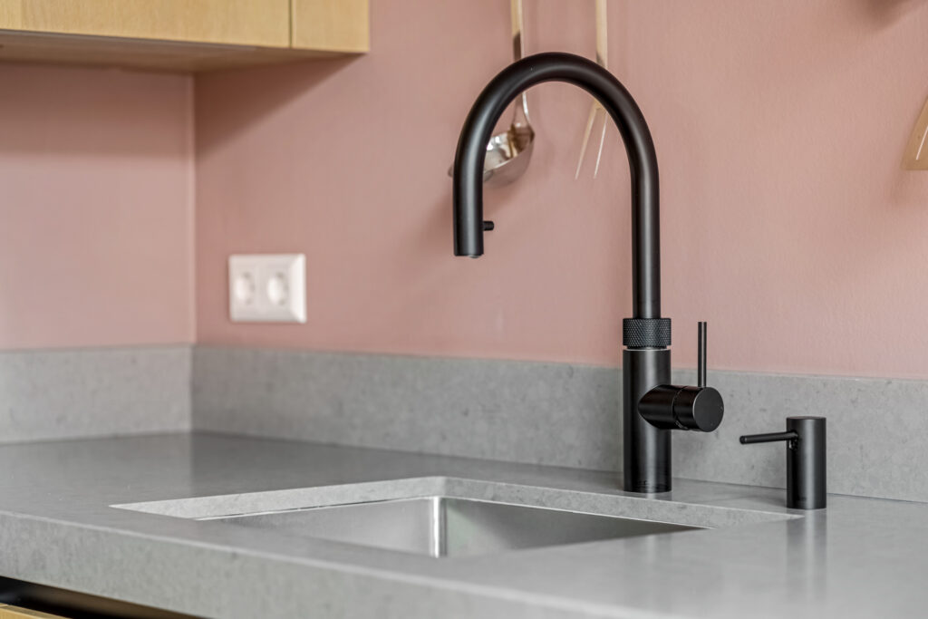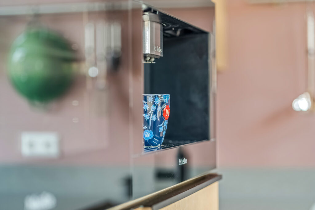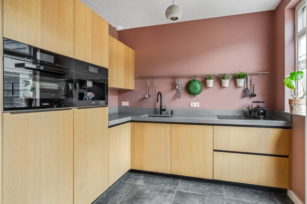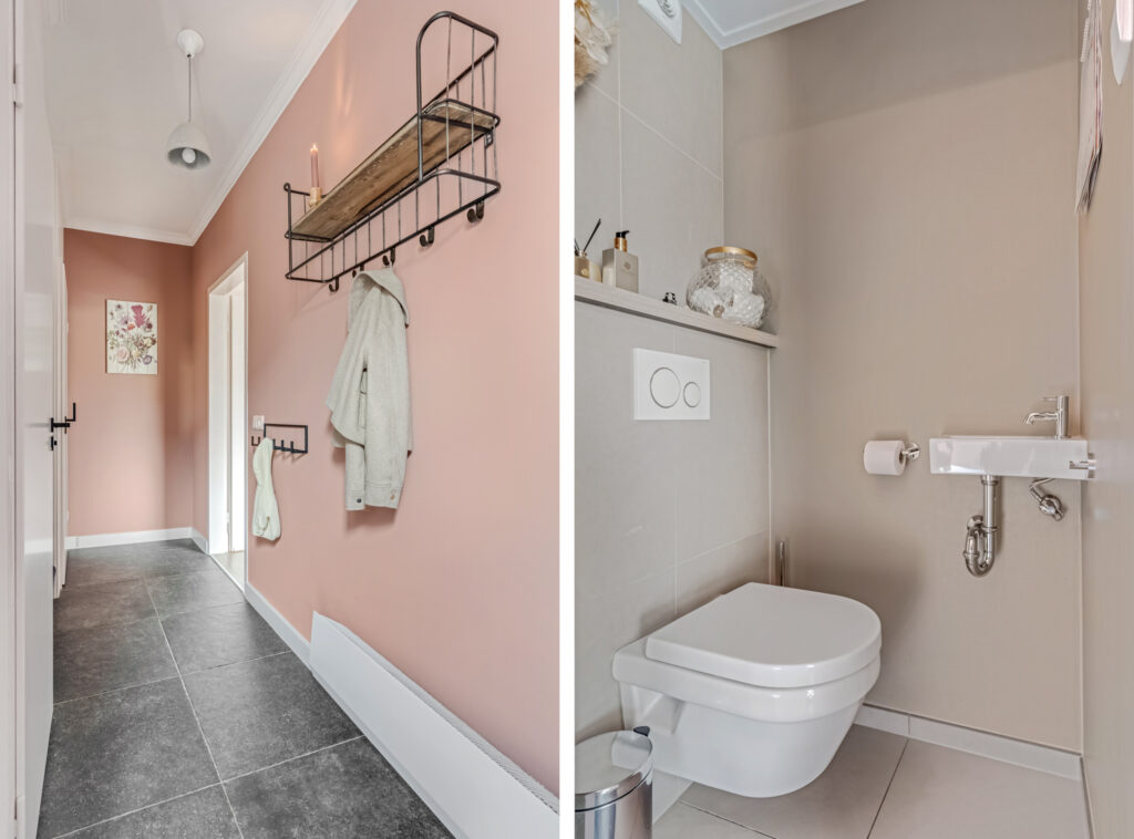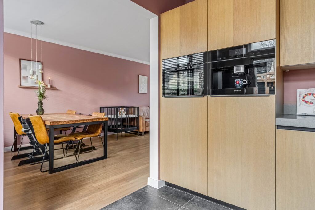 entree, hal met meterkast en mooi toilet, toegang tot de strak afgewerkte woonkamer en toegang naar de luxe keuken voorzien van koelkast ( 2x / 1 met vriesvak ), inductie Bora kookplaat met geïntegreerde afzuiginstallatie, vaatwasmachine, combi-stoomoven, inbouw koffie machine ( met automatische ontkalking ) quooker, bergruimte en composiet werkblad.