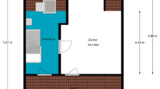 via vaste trap naar overloop met c.v. opstelling en 4e slaapkamer met dakkapel.
