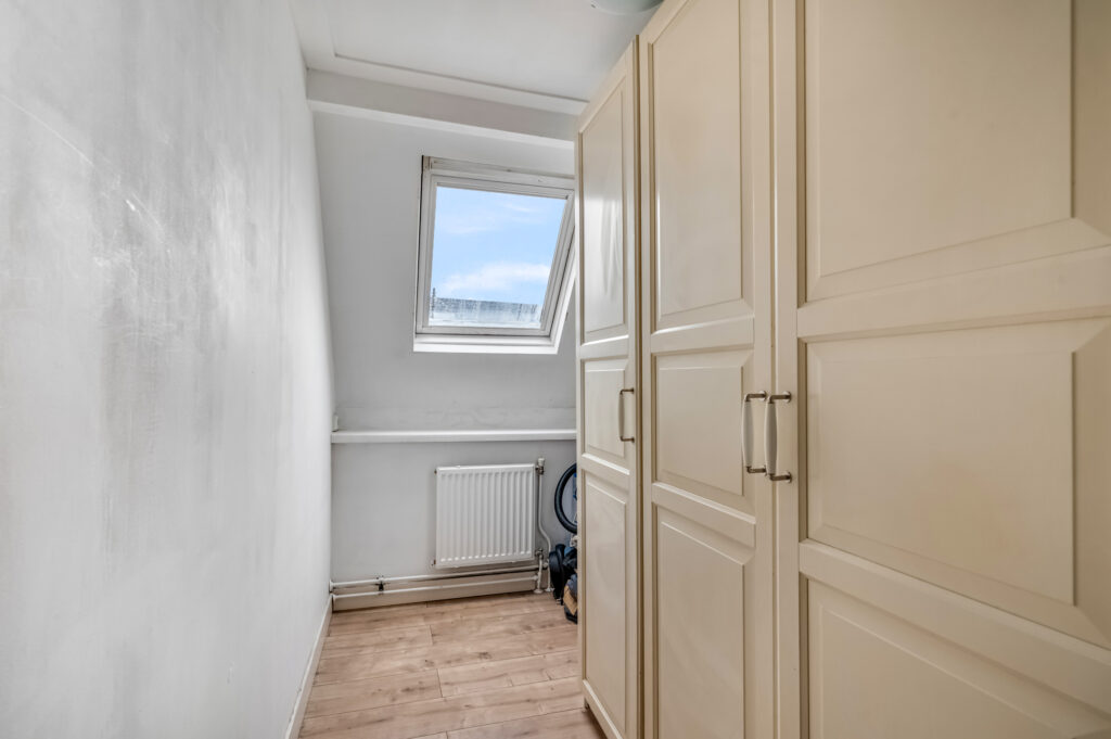 via luik naar kleine zolder / berging met o.a. opstelling c.v. gasgestookte ketel.