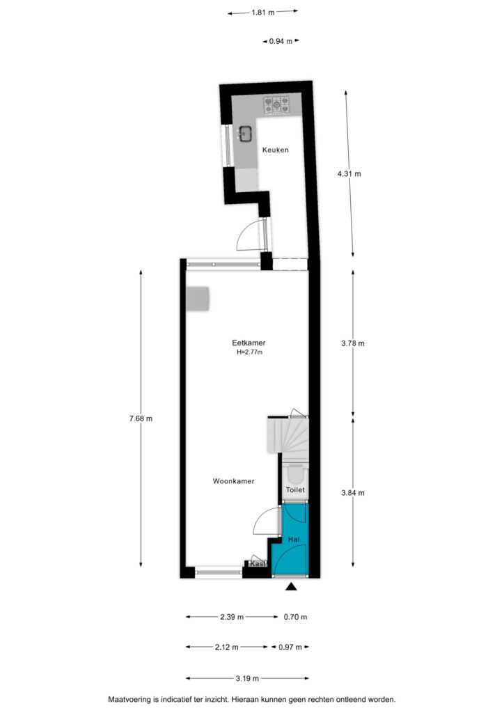 entree, hal, toilet, gezellige woonkamer met toegang tot de luxe keuken voorzien van combimagnetron, vaatwasmachine, koelkast, vriezer, 5 pits gaskookplaat en afzuigschouw.
