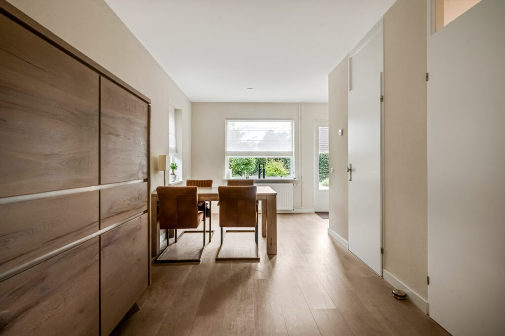 entree, hal, toilet, meter- en garderobekast. Toegang tot de heerlijk ruime woonkamer met veel lichtinval. De open haard zorgt voor een aangename warmte tijdens de koude najaar- en wintermaanden.