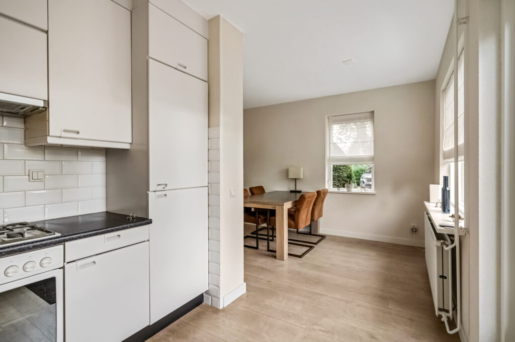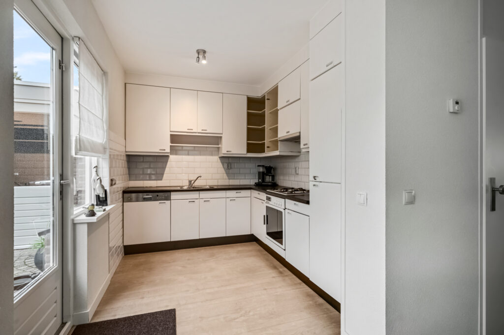 Aan de achterzijde treft u de eenvoudige keuken met loopdeur naar de ruime tuin gelegen op het zuiden, hoe fijn is dat!