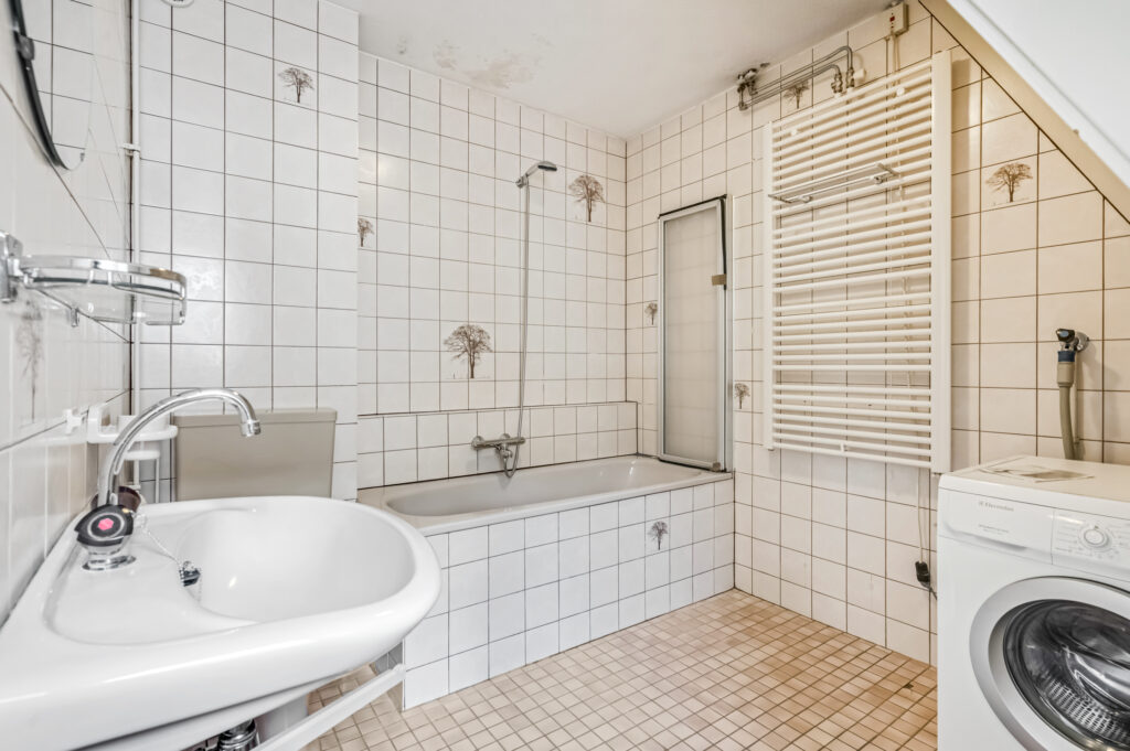 overloop, royale standaard badkamer met ligbad, vaste wastafel, 2e toilet en wasmachine aansluiting. Voorts treft u 3 volwaardige slaapkamers.