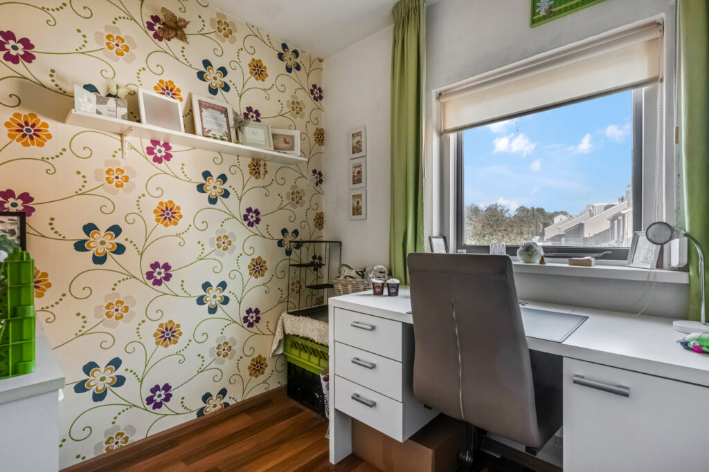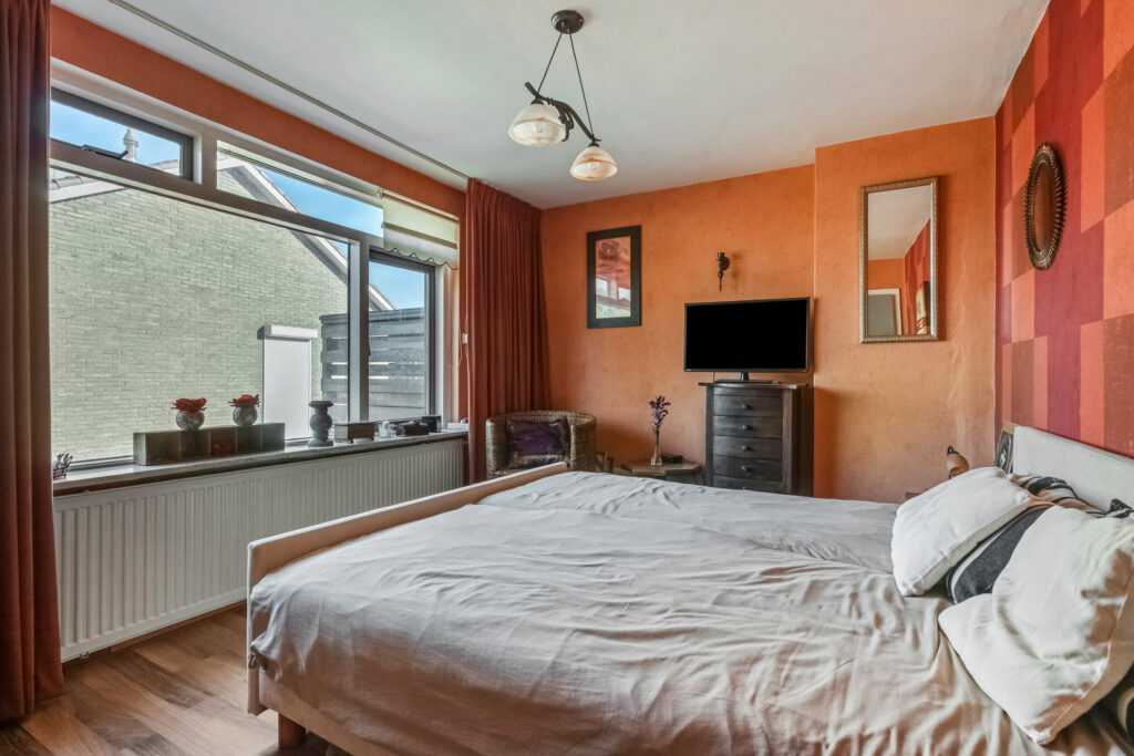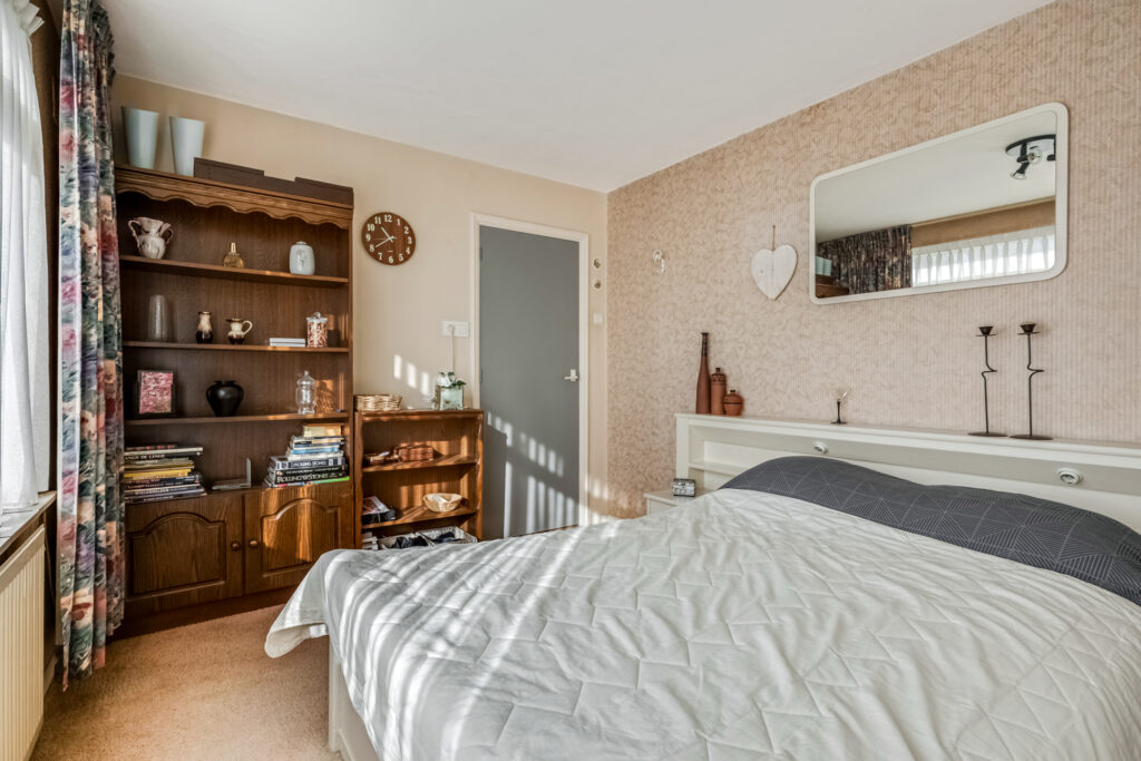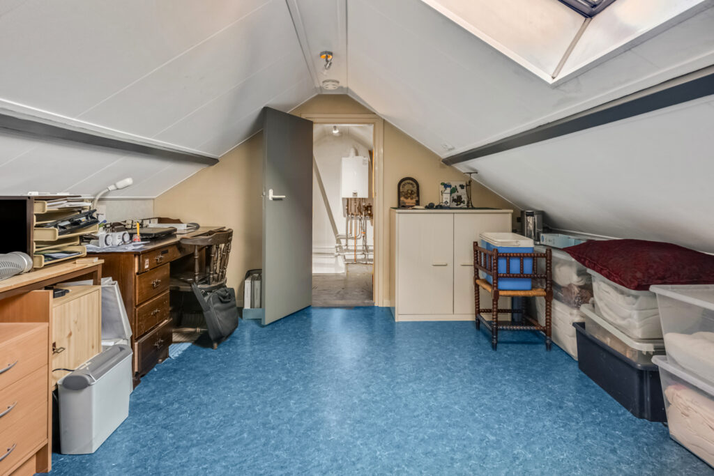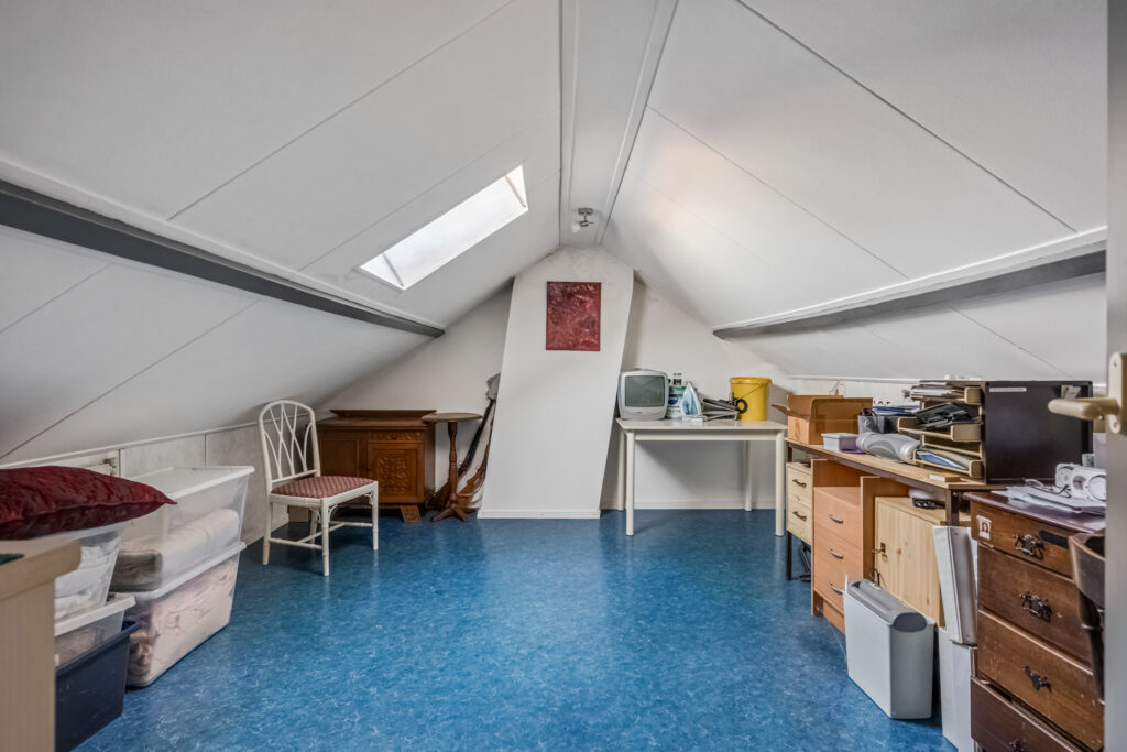 De woonkamer is mooi breed en zonder meer gezellig, mede door de grote raampartijen. Op de eerste verdieping zijn 3 slaapkamers en een badkamer. De zolder is te bereiken via een vaste trap: hier is het nog zeker mogelijk een kamer te realiseren.