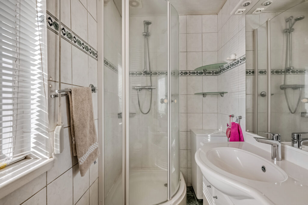 overloop met toegang tot 3 slaapkamers en de badkamer welke is voorzien van 2e toilet, douche cabine en vaste wastafel.