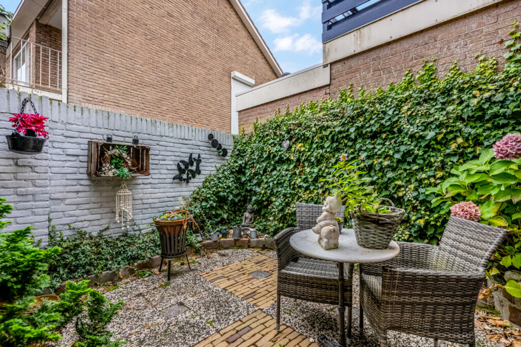 Buiten is het goed toeven op het dakterras en als je in de schaduw wilt zitten is de kleine maar o zo gezellige stadstuin een aanrader!