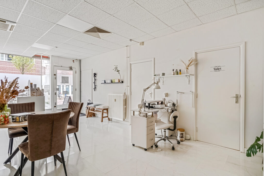 Op de begane grond bevindt zich momenteel een beautysalon met een oppervlakte van circa 92 m². Deze ruimte beschikt over een bestemming Centrum – 2 en is onder meer bestemd voor: dienstverlening, maatschappelijke voorzieningen, kantoren, ambachtelijke bedrijven, expositieruimten, ateliers en galeries, en horeca van horecacategorie 1.