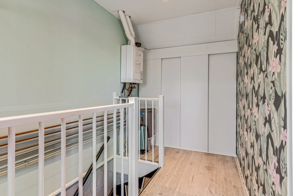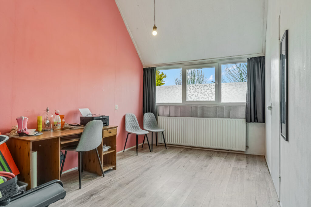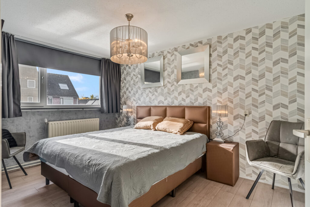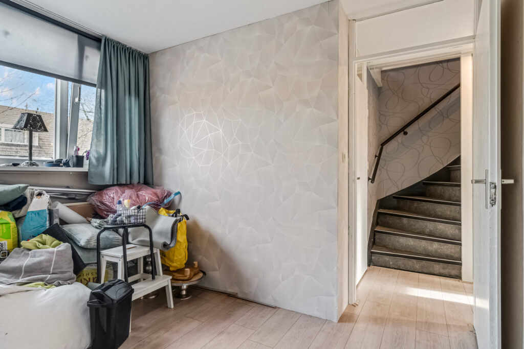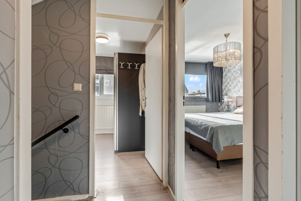 De eerste verdieping beschikt over meerdere slaapkamers, twee slaapkamers achterin en een slaapkamer voorin de woning. De badkamer zit ook voorin en is door de huidig eigenaar vergroot. De tweede verdieping biedt een extra slaapkamer, eveneens met laminaatvloer en kunststof kozijnen met horren. Ook zijn hier de witgoedaansluitingen, CV -ketel, ventilatie box en omvormer van de zonnepanelen geplaatst.