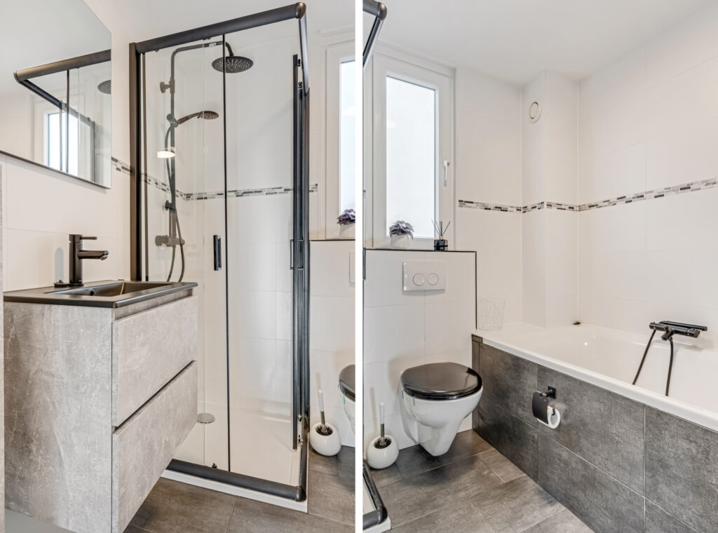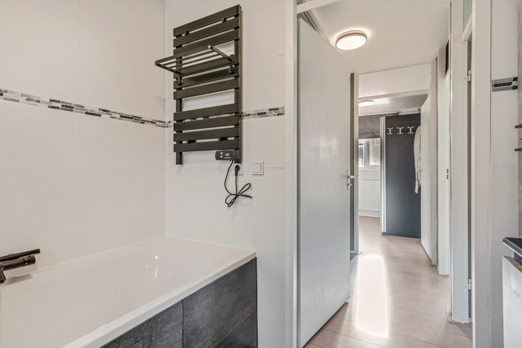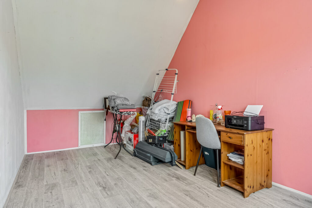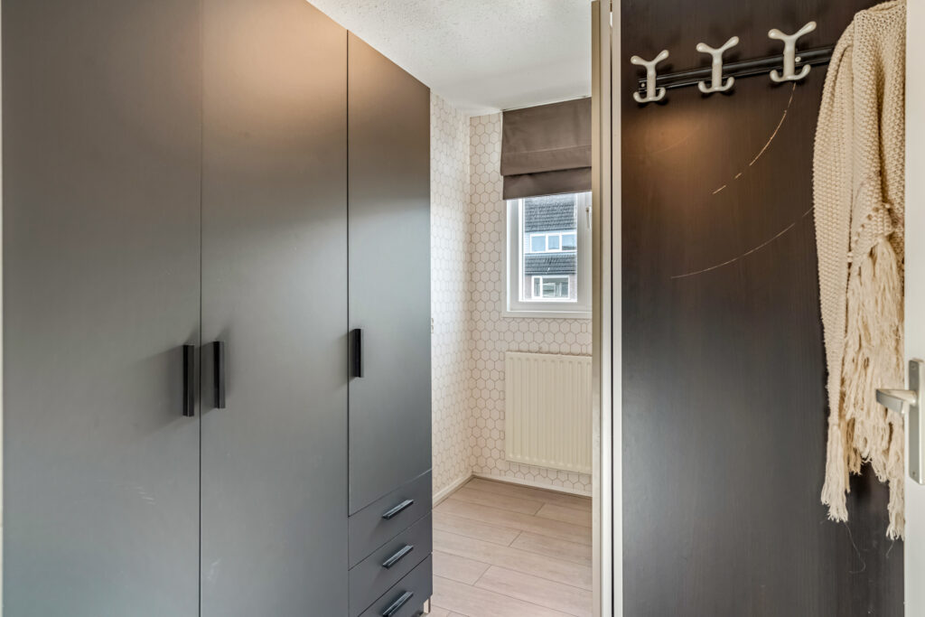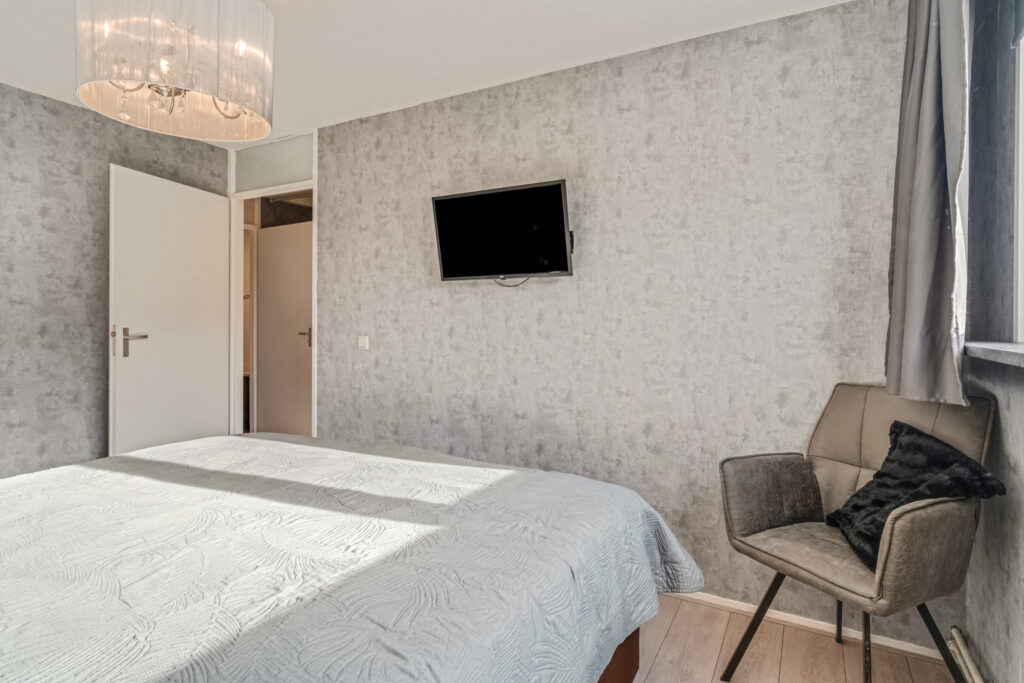 De eerste verdieping beschikt over meerdere slaapkamers, twee slaapkamers achterin en een slaapkamer voorin de woning. De badkamer zit ook voorin en is door de huidig eigenaar vergroot. De tweede verdieping biedt een extra slaapkamer, eveneens met laminaatvloer en kunststof kozijnen met horren. Ook zijn hier de witgoedaansluitingen, CV -ketel, ventilatie box en omvormer van de zonnepanelen geplaatst.