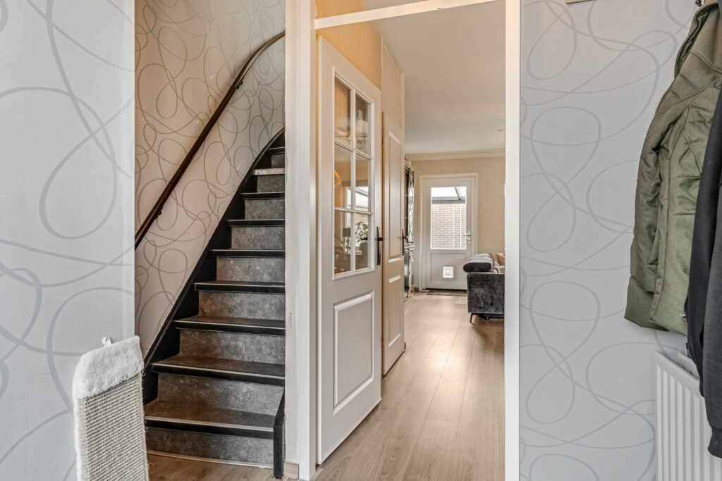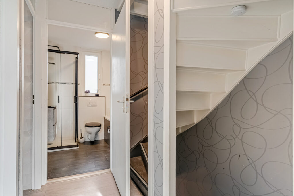 Op de begane grond vind je de hal met toilet en meterkast, gevolgd door de lichte woonkamer met laminaatvloer en trapkast. De open moderne keuken is compleet ingericht met een inductiekookplaat, afzuigkap, oven, koel-vriescombinatie en vaatwasser. Dankzij de kunststof kozijnen met HR++ glas is het hier niet alleen energiezuinig wonen, maar ook onderhoudsarm wonen.