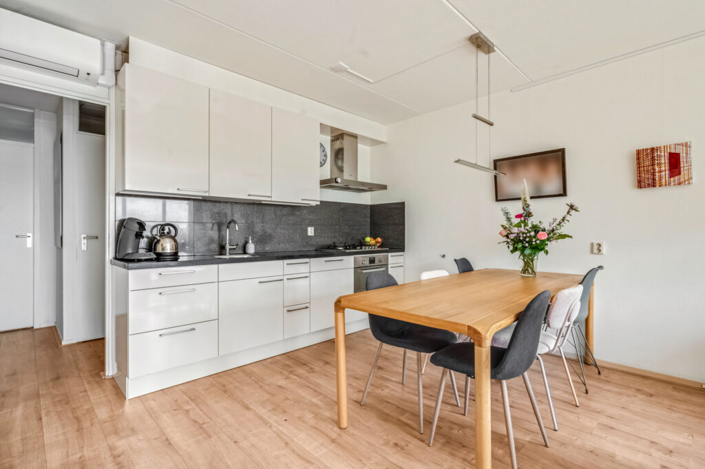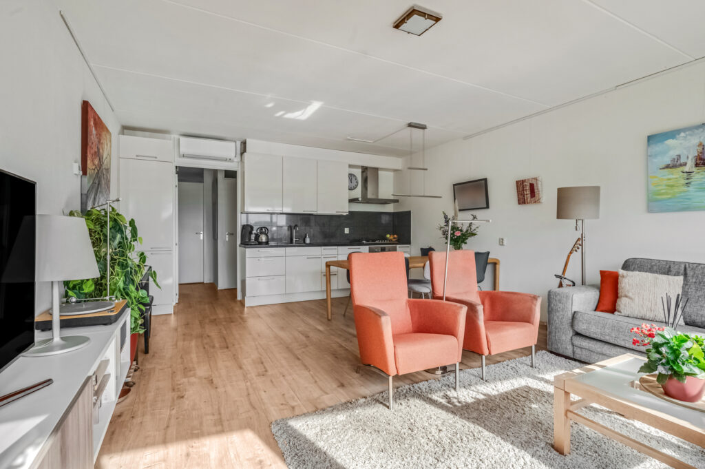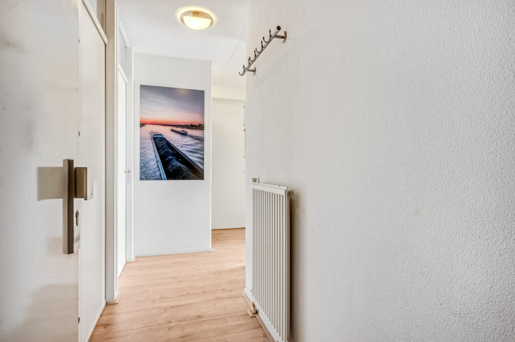 Ben je op zoek naar een prima onderhouden appartement waar je zo in kunt? Dit lichte 3-kamer starters appartement biedt niet alleen een frisse afwerking en een praktische indeling, maar ook een heerlijk panorama: