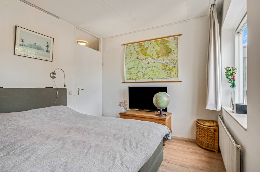Binnen vind je een sfeervolle woonkamer met grote ramen, twee slaapkamers, een mooie keuken en een nette badkamer – allemaal keurig onderhouden en direct klaar voor gebruik.