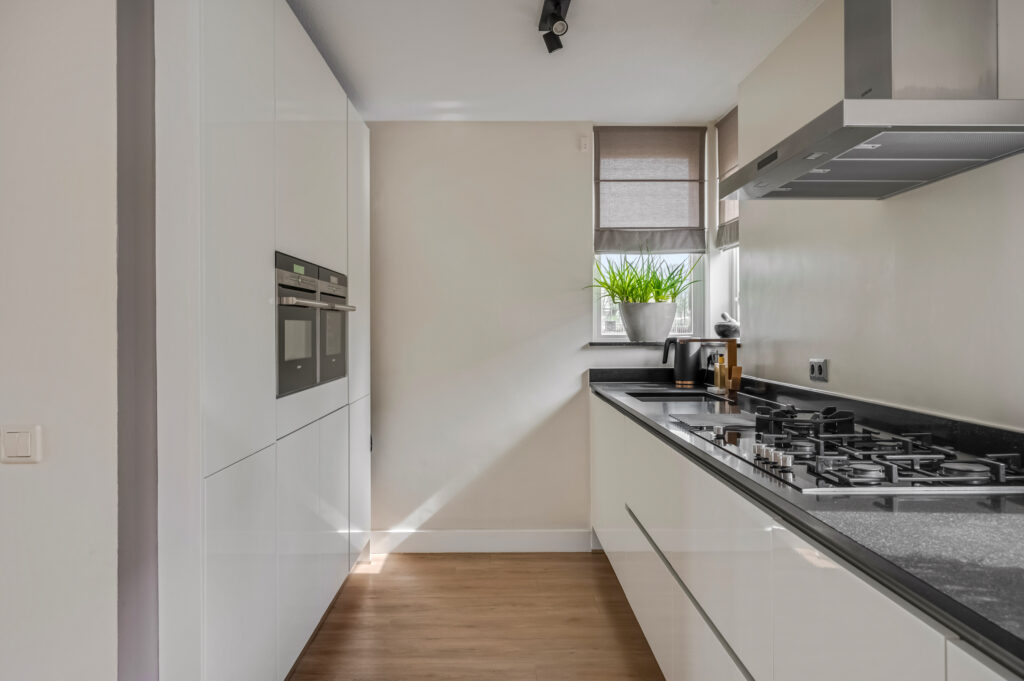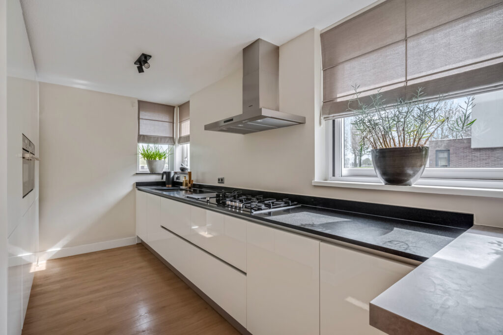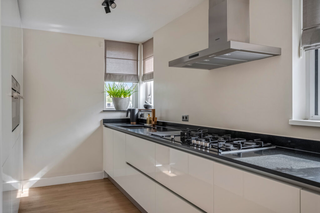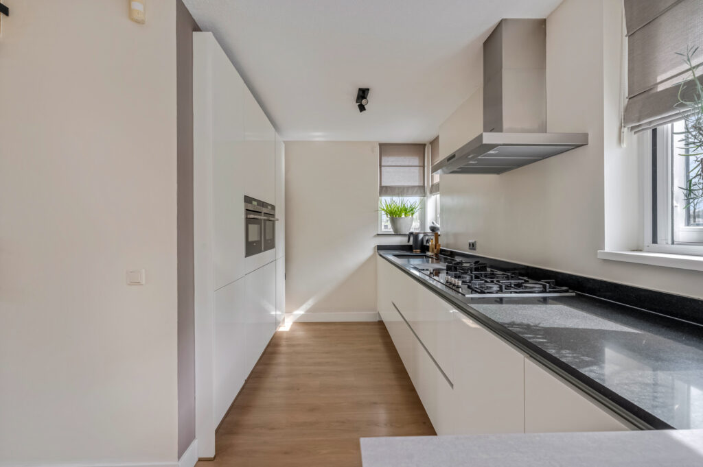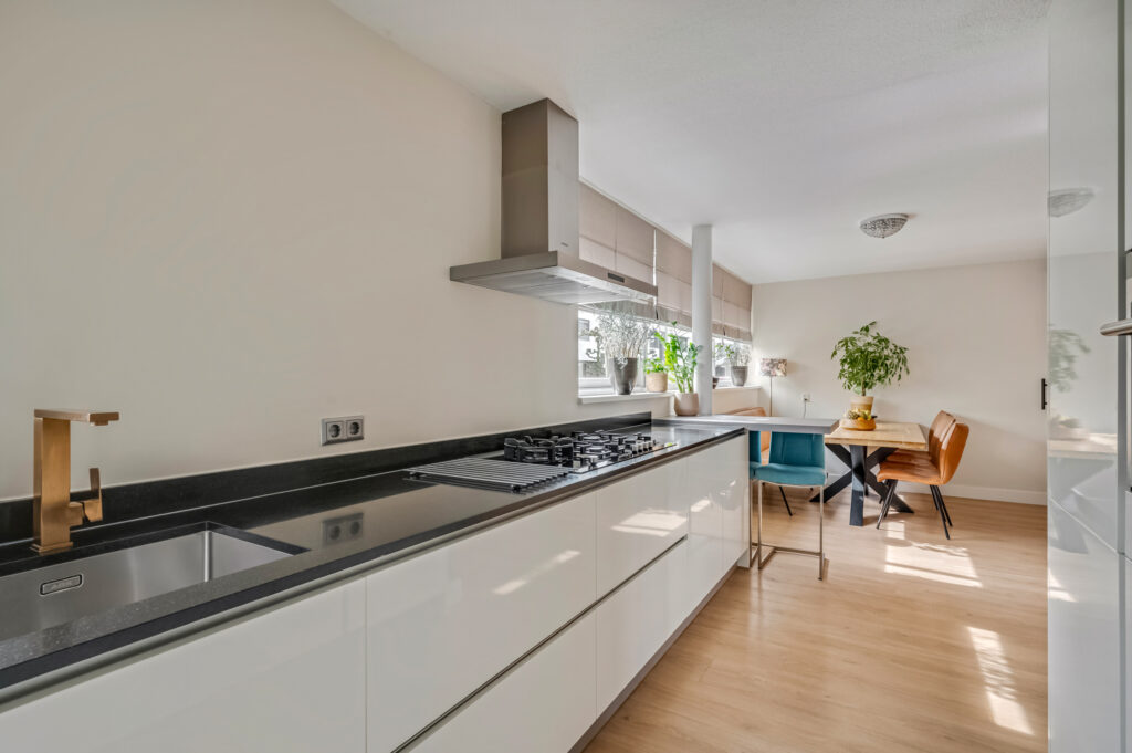 De complete keuken en woonkamer vormen samen het hart van het huis: ruim, licht en praktisch ingericht voor het dagelijkse leven, maar ook perfect om gasten te ontvangen.
