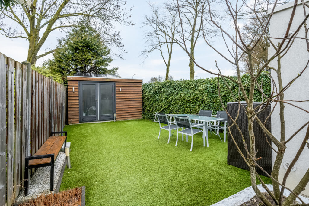 de achtertuin is heerlijk diep en heeft een buitendouche en een tweetal bijgebouwen. De schuur achterin is ideaal voor tuinopslag en fietsen, de andere is ideaal voor praktijkruimte. Deze ruimte is namelijk geïsoleerd, heeft elektra en verwarming.