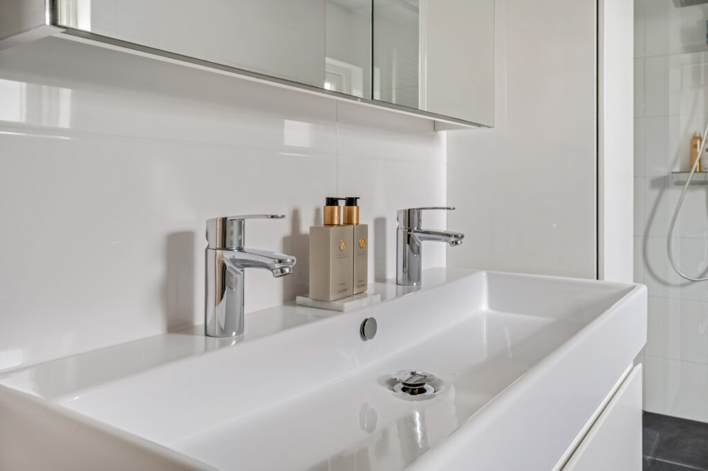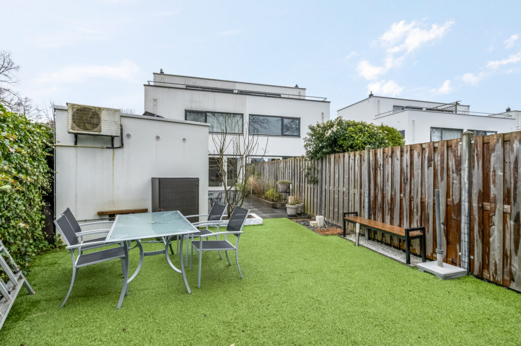 De begane grond is strak en sfeervol afgewerkt met een moderne pvc-vloer, strak gestuucte wanden en comfortabele vloerverwarming. De openslaande deuren verbinden binnen moeiteloos met buiten, waardoor de tuin echt een verlengstuk van je leefruimte wordt. De diepe achtertuin is ideaal ingedeeld, waardoor je altijd kunt kiezen tussen zon en schaduw – met achterin een heerlijke plek om tot in de avond van de zon te genieten.
