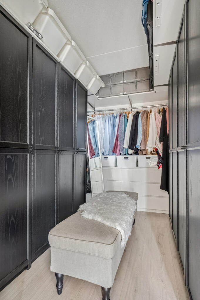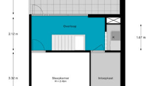 voorzolder voorzien van witgoed. Toegang tot een tweetal (slaap)kamers, waarvan de één inloopkast is met opstelling CV en mechanische ventilatie en de ander een slaapkamer is met airconditioning.