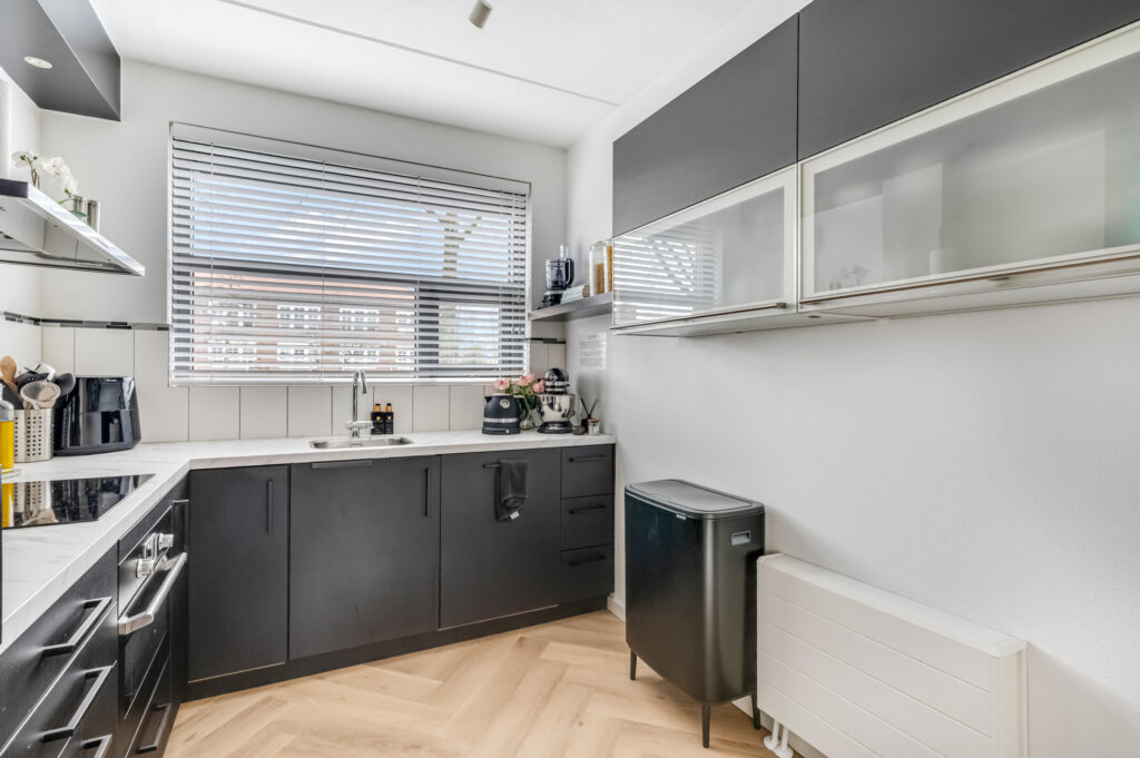 je komt de woning binnen en voelt je gelijk thuis in de ruime entree met modern toilet Hierna kom je in de brede tuin gerichte woonkamer. De woonkamer is heerlijk licht afgewerkt en beschikt over een moderne pvc vloer met vloerverwarming. Op de luxe keuken ben je op slag verliefd: inductiekookplaat, afzuigschouw, koel-vriescombinatie, oven en een prachtig aanrechtblad: wat wil je nog meer?