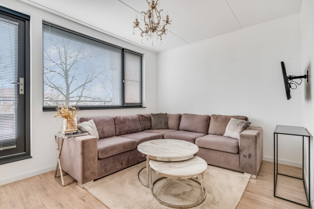 prachtige verblijfsruimte met toegang tot het dakterras en de 4e slaapkamer.
