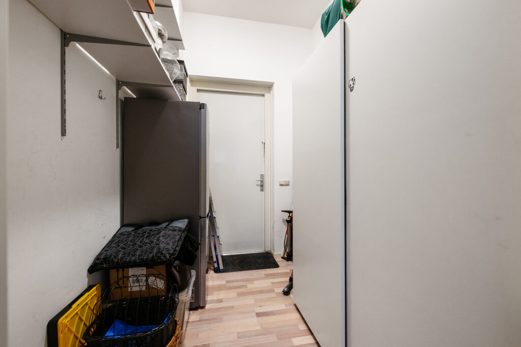 Aansluitend bevindt zich een praktische inpandige berging met elektra — perfect voor extra opslag of het stallen van fietsen.