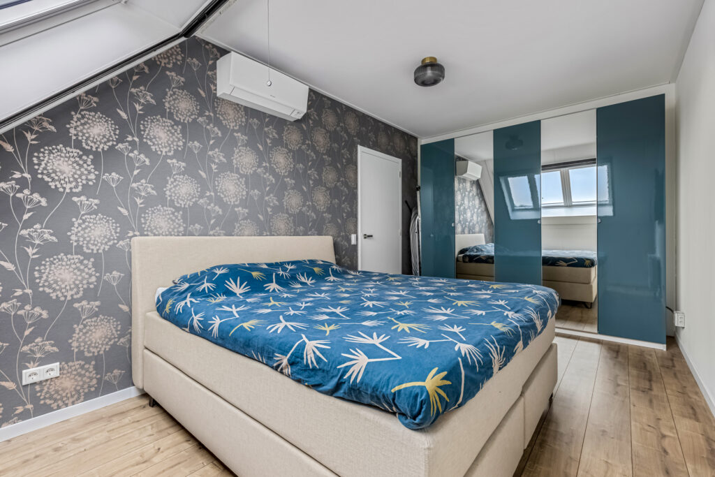 Vervolgens zijn twee slaapkamers te bereiken. De grootste kamer heeft hele fraaie dakramen en een airco. Beide kamers lenen zich ook uitstekend voor kantoor- of hobbyruimte.