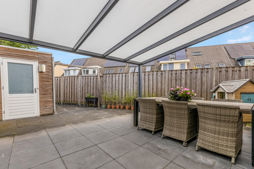 – achtertuin met overkapping