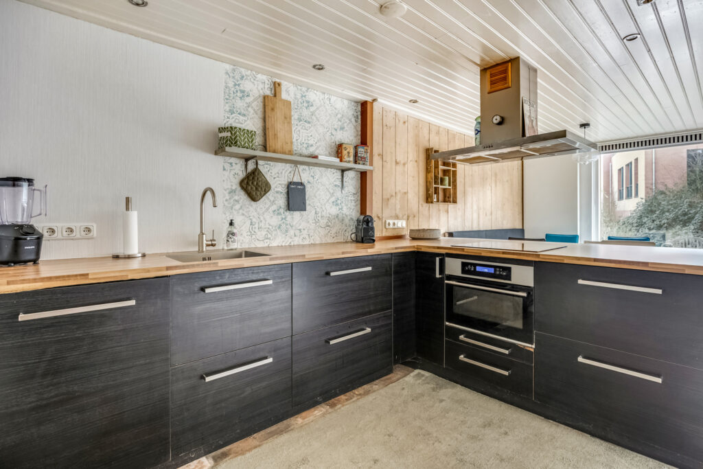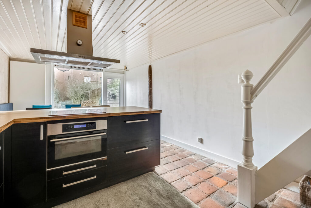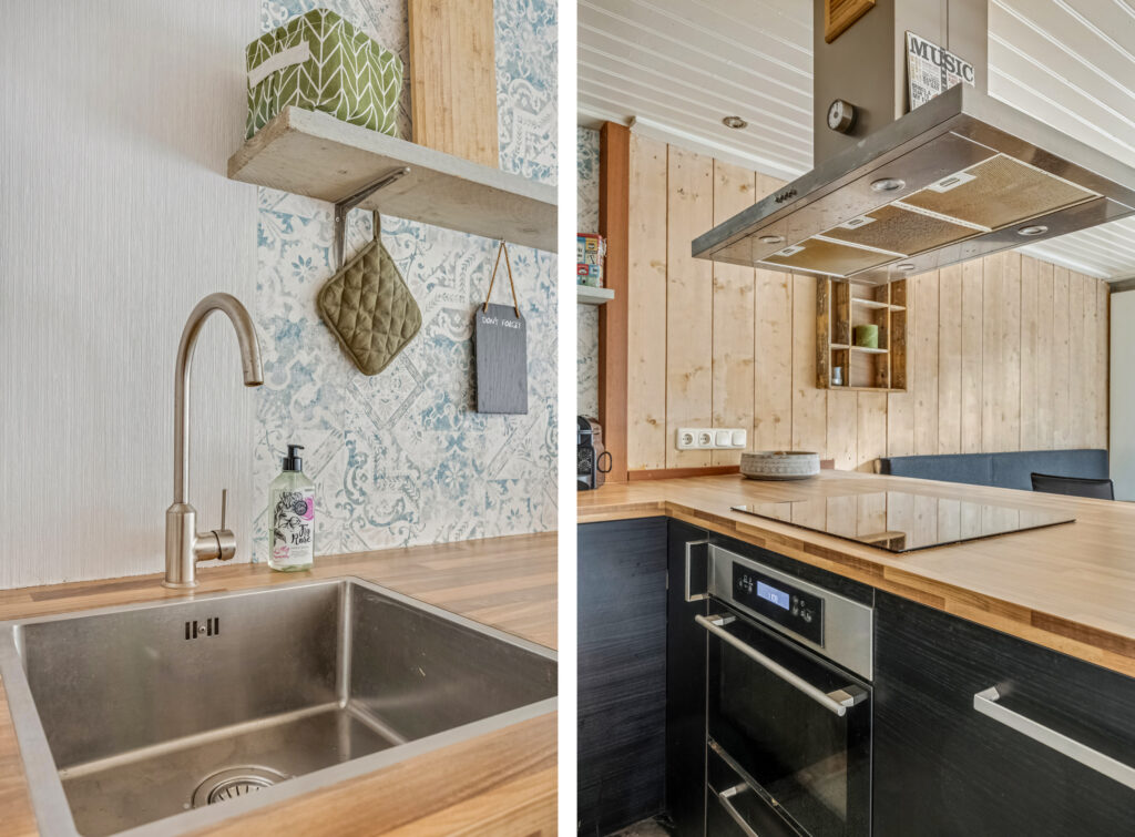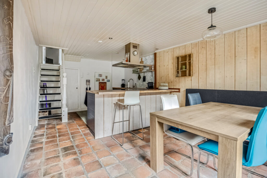 hier tref je de verrassend ruime woonkeuken met toegang naar de tuin op het zuiden. De woonkeuken beschikt over een ruim eetgedeelte en de keuken zelf is voorzien van een inductie kookplaat, afzuigschouw, kleine koelkast en combi magnetron. Hier kan je heerlijk rustig, gezellig ontspannen en heerlijk tafelen met vrienden, familie en/of kids.