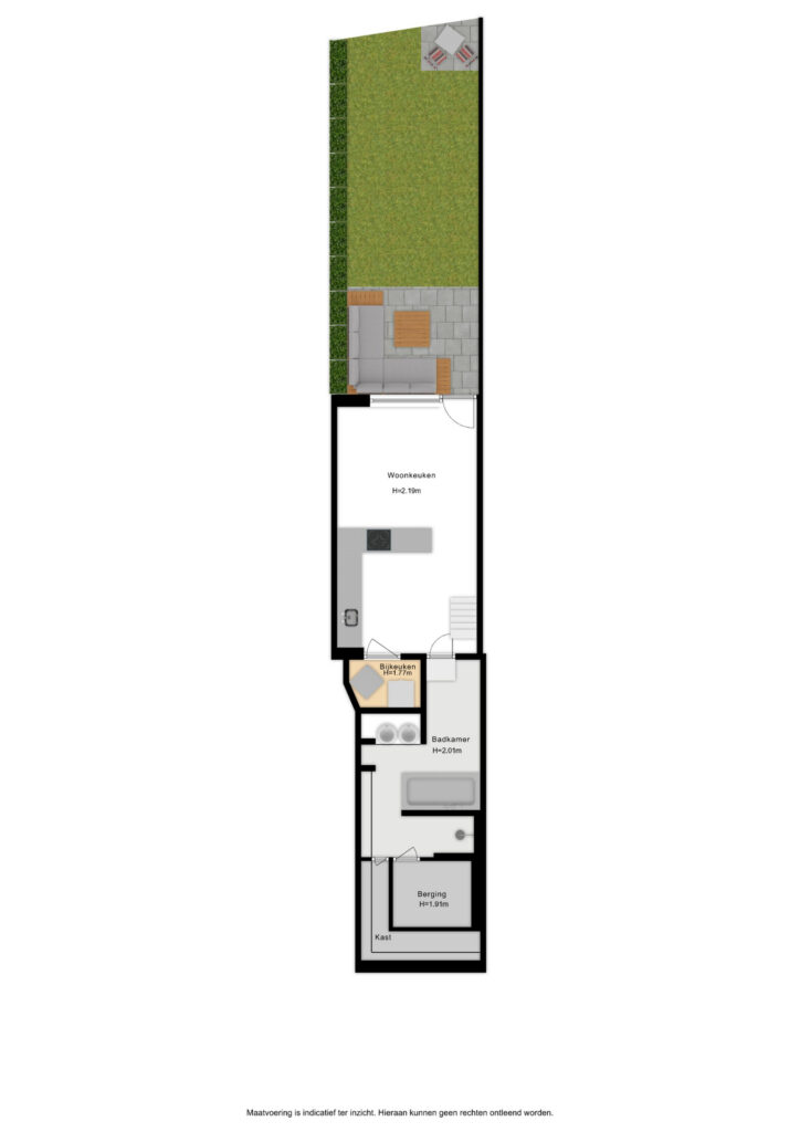 hier tref je de verrassend ruime woonkeuken met toegang naar de tuin op het zuiden. De woonkeuken beschikt over een ruim eetgedeelte en de keuken zelf is voorzien van een inductie kookplaat, afzuigschouw, kleine koelkast en combi magnetron. Hier kan je heerlijk rustig, gezellig ontspannen en heerlijk tafelen met vrienden, familie en/of kids.