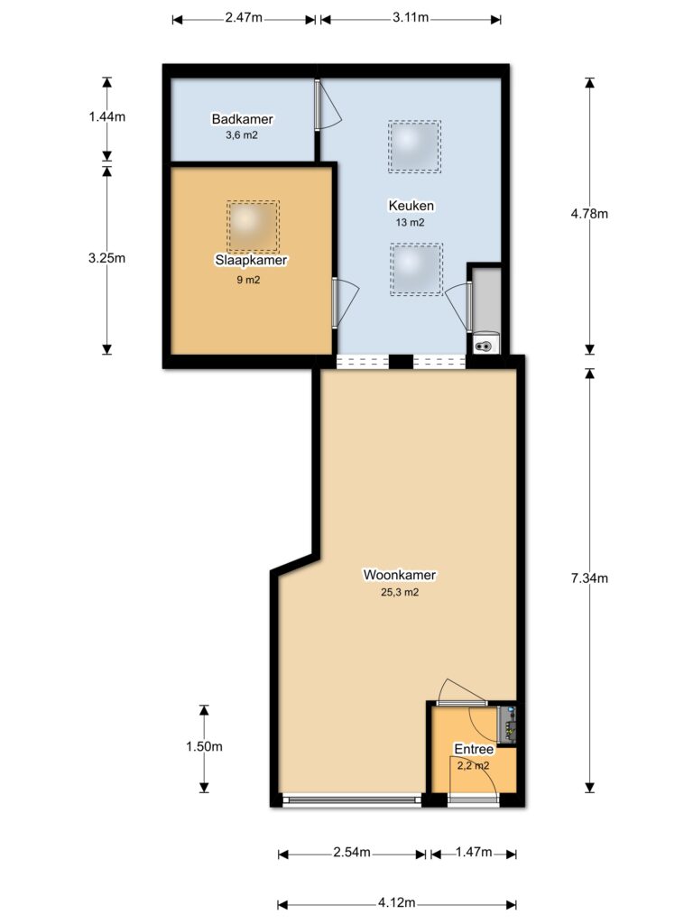Daarnaast beschikt de woning over een separate slaapkamer en een nette badkamer met inloopdouche, wastafel, toilet en designradiator.