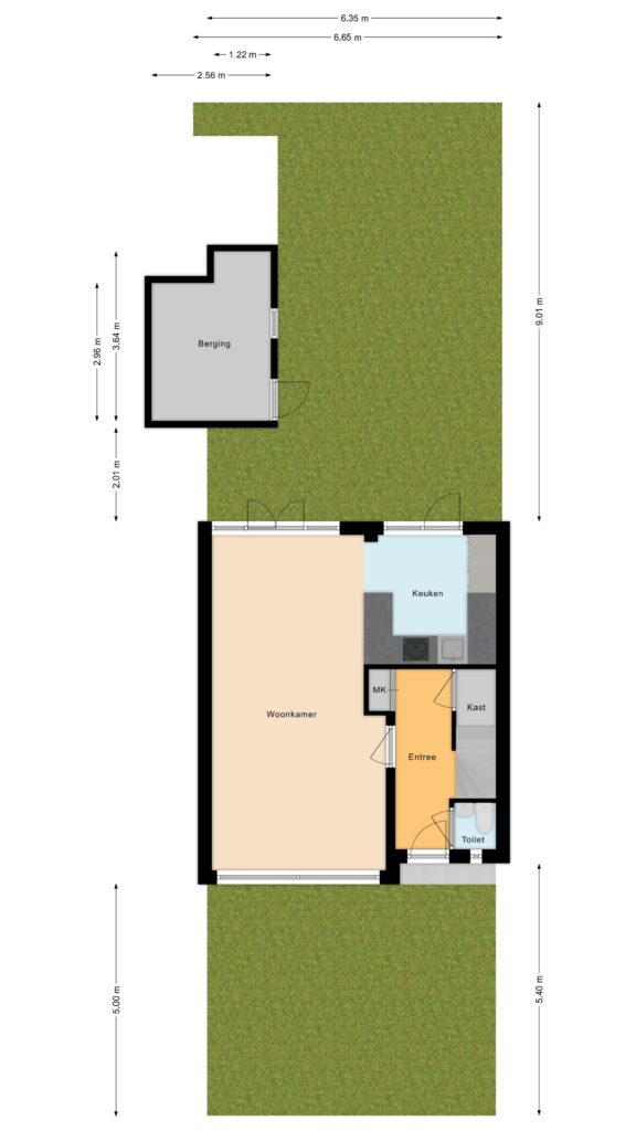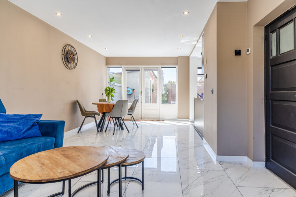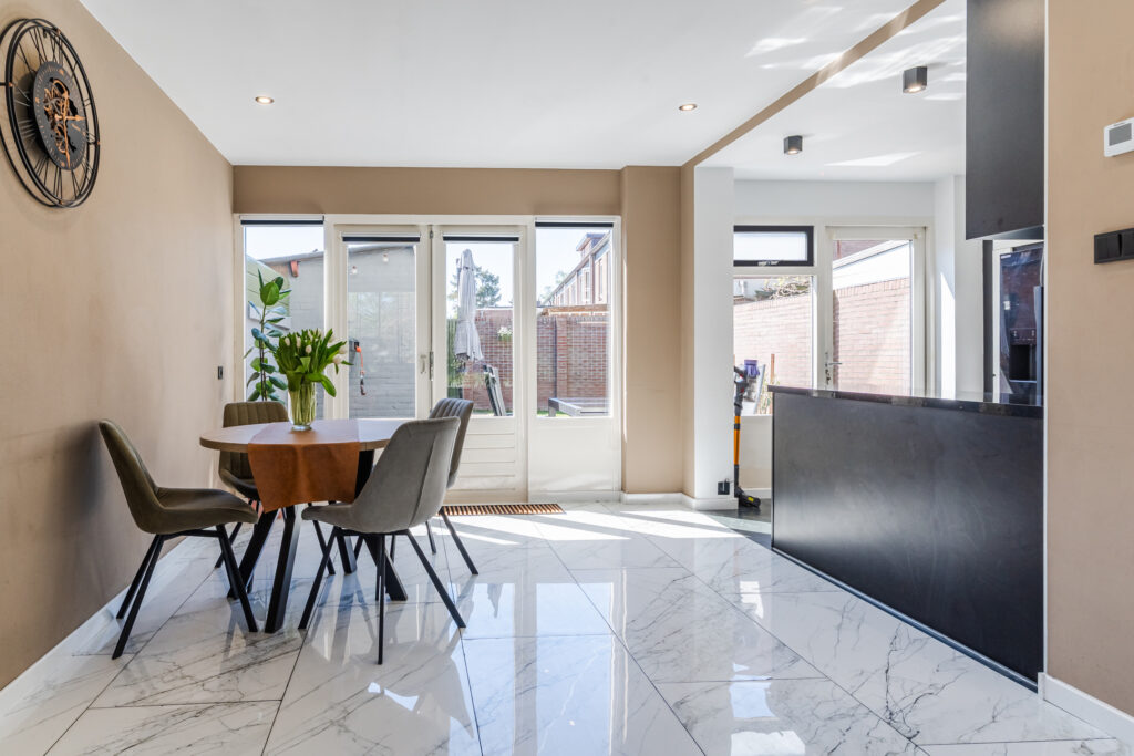 Via openslaande deuren is de achtertuin te bereiken.