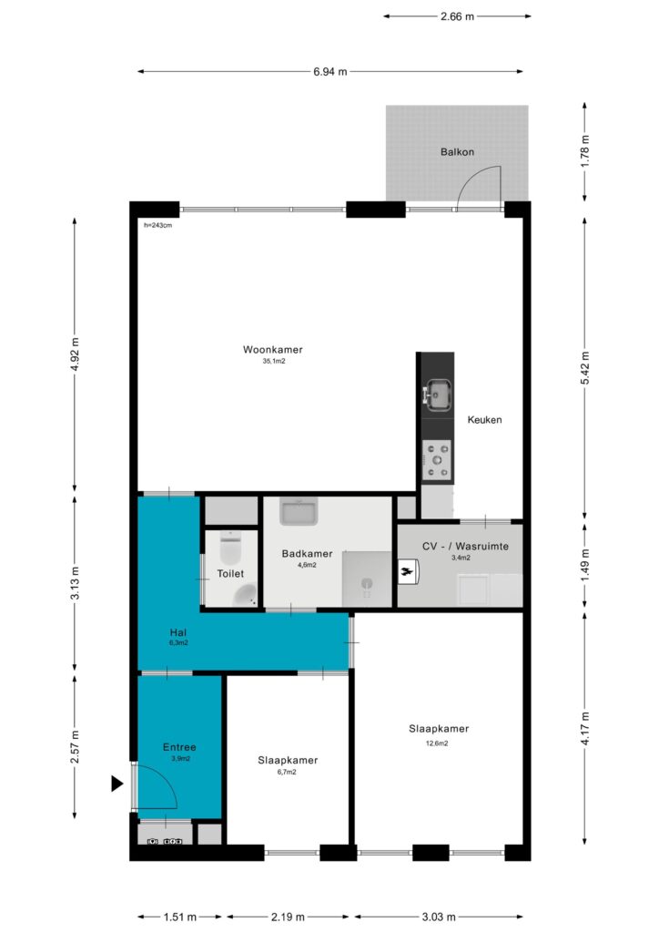 – balkon gelegen op het oosten met uitzicht over de woonwijk