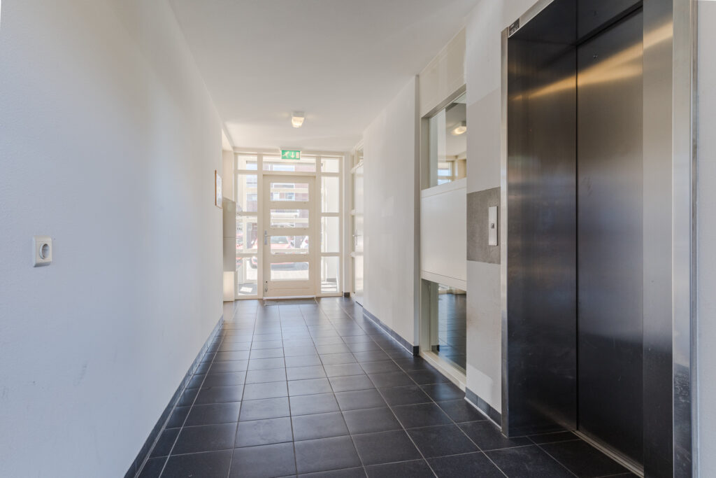 Centrale entree met intercom, entreehal met lift en trappenhuis, toegang tot de berging.