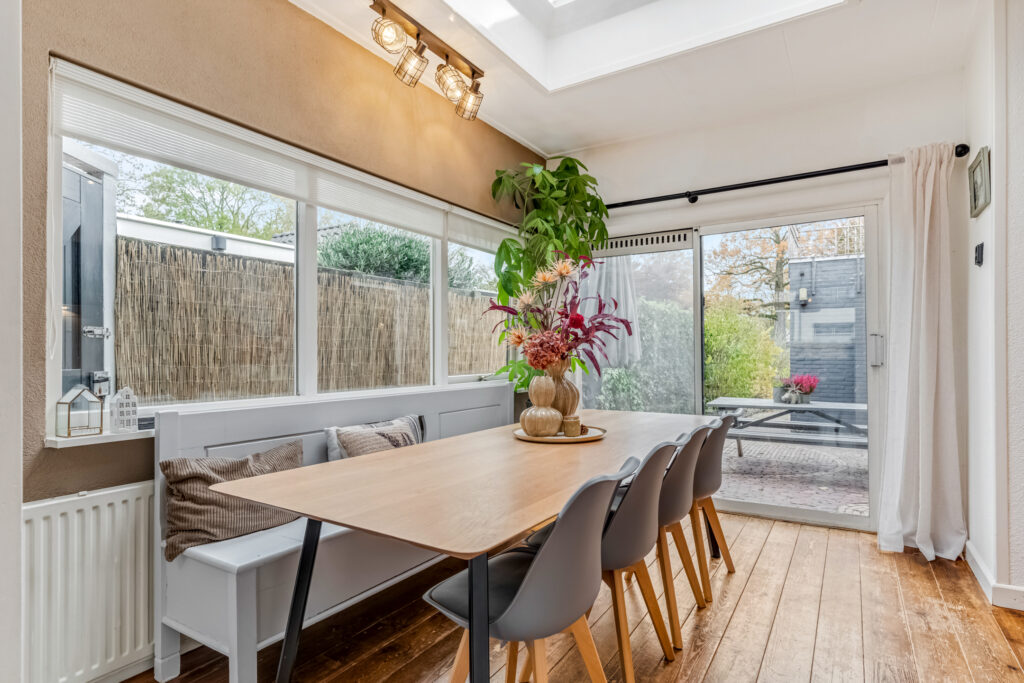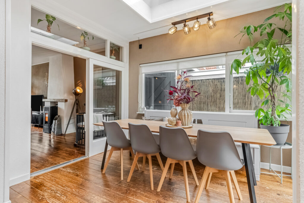 Vanuit deze ruimte – met extra licht via een daklicht – loop je zo de tuin in… hoe fijn is dat!