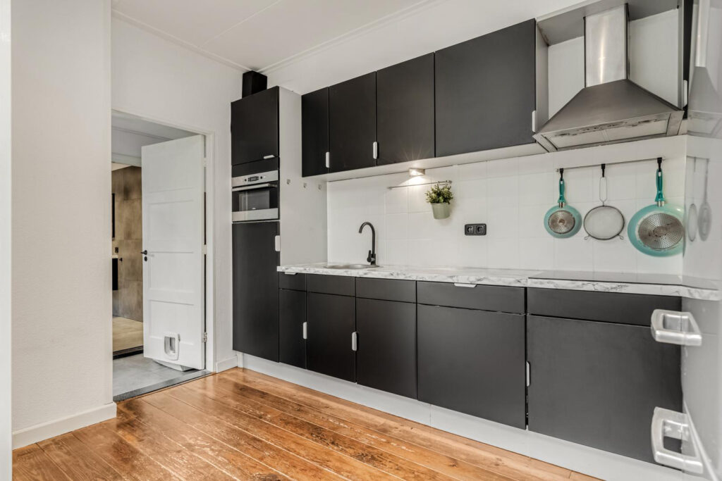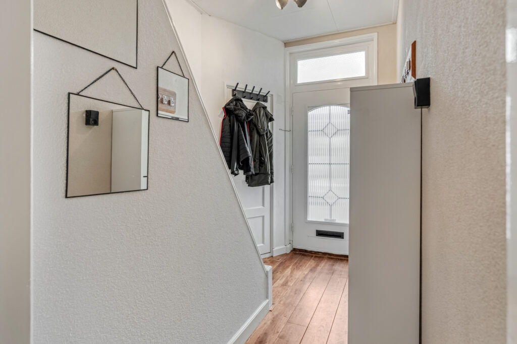 entree, hal, meterkast, toegang tot de woonkamer aansluitend de woonkeuken met inductiekookplaat, combi magnetron, koelkast en voldoende bergruimte.