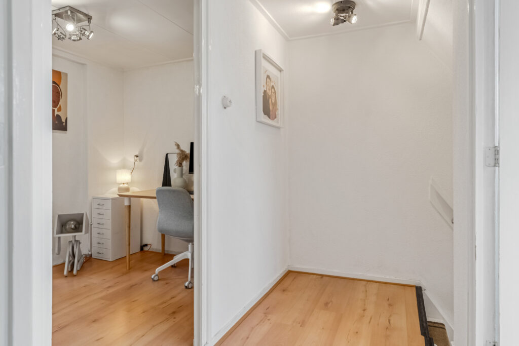 overloop met toegang tot 3 slaapkamers alsmede een ’tussenkamer ‘ Eén slaapkamer heeft toegang tot het dakterras. (aan te leggen )