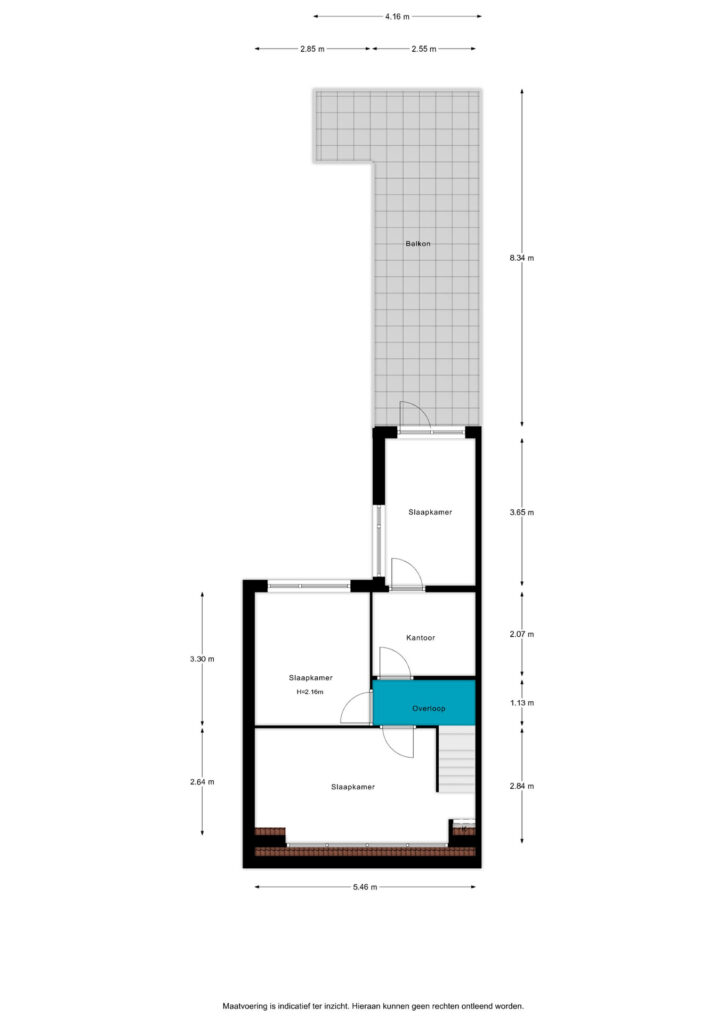 overloop met toegang tot 3 slaapkamers alsmede een ’tussenkamer ‘ Eén slaapkamer heeft toegang tot het dakterras. (aan te leggen )