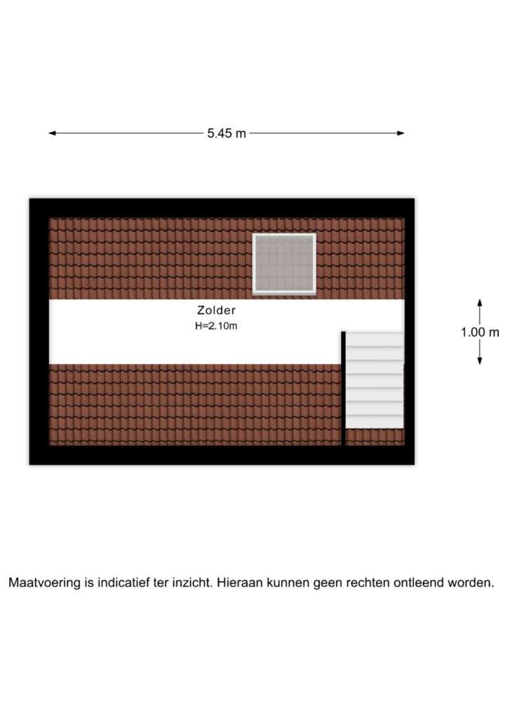 Te bereiken via vaste trap: goed bruikbare bergzolder.