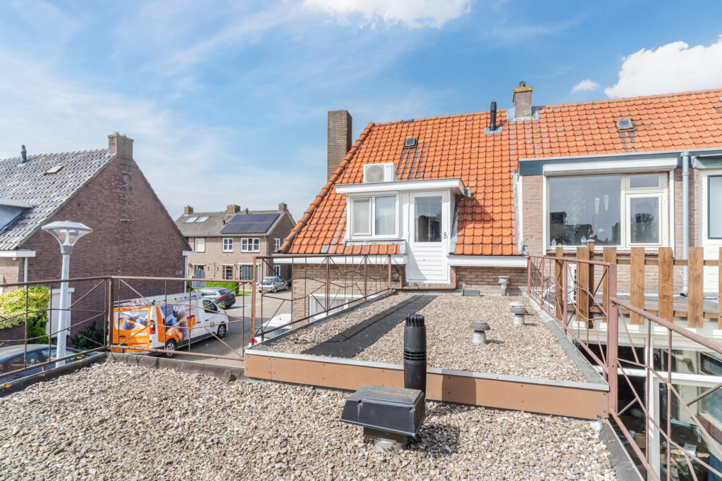 Via één van de slaapkamers is het platte dak bereikbaar — een mooie kans om hier, met het plaatsen van een balustrade, een dakterras te realiseren.