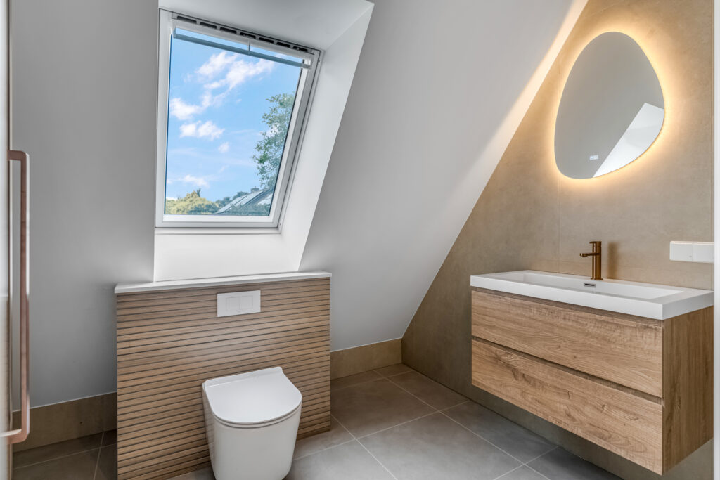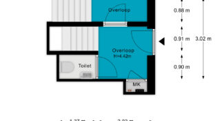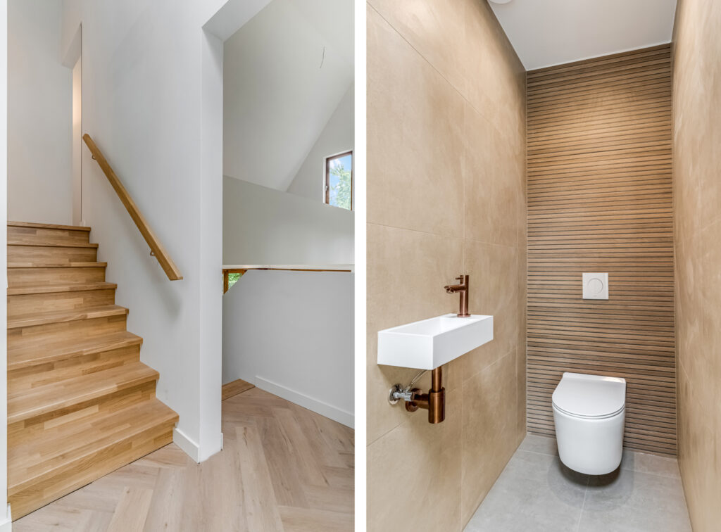 Verdieping: 2 slaapkamers, luxe 2e badkamer met douche en tweede toilet. Plus….schitterende multifunctionele ruimte. Denk bijvoorbeeld aan een mooie werkplek om thuis te werken!