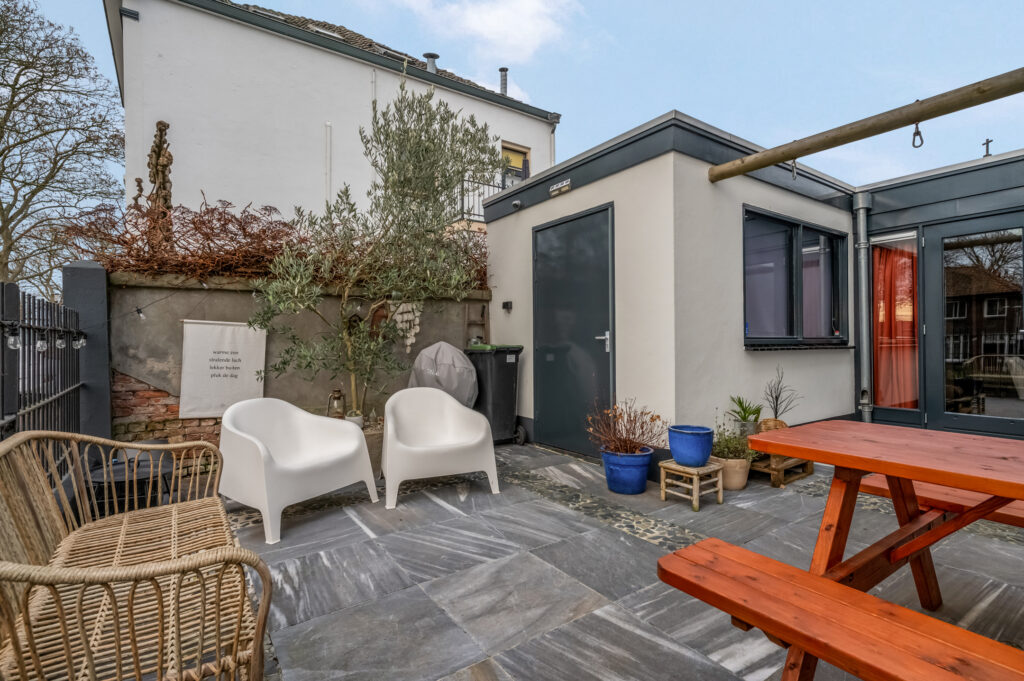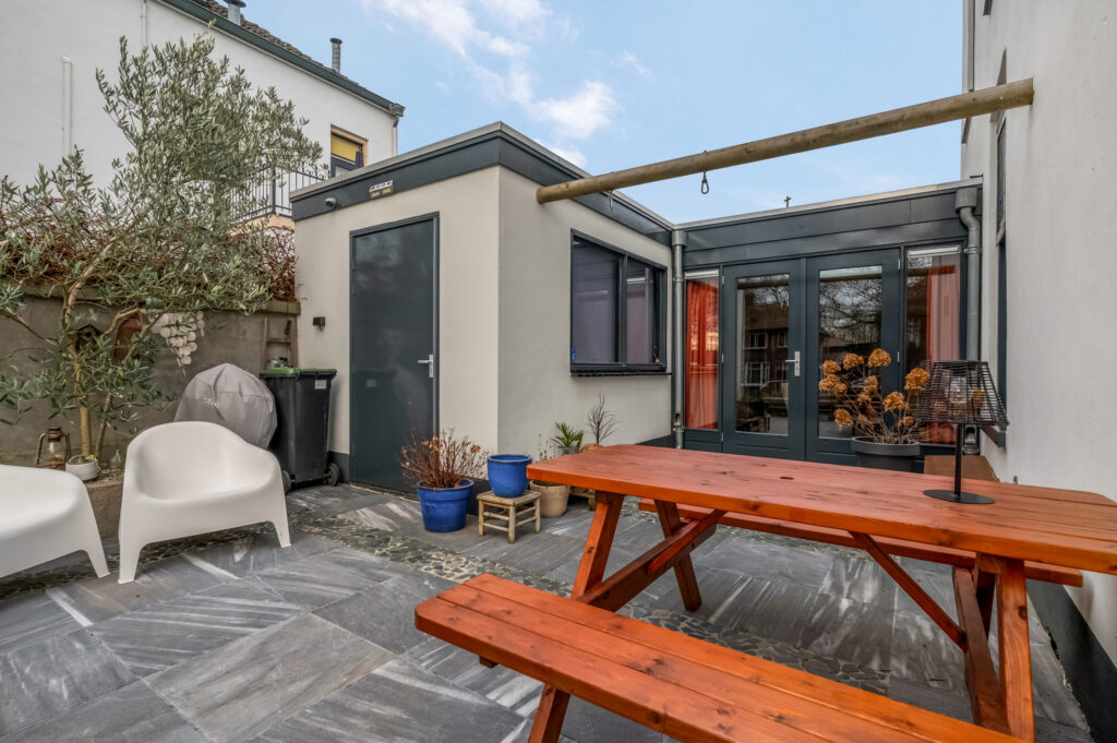 Via de openslaande deuren loop je zo de (zij) tuin in – gelegen op het zuiden – hoe fijn is dat!