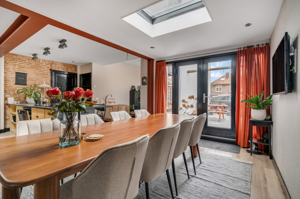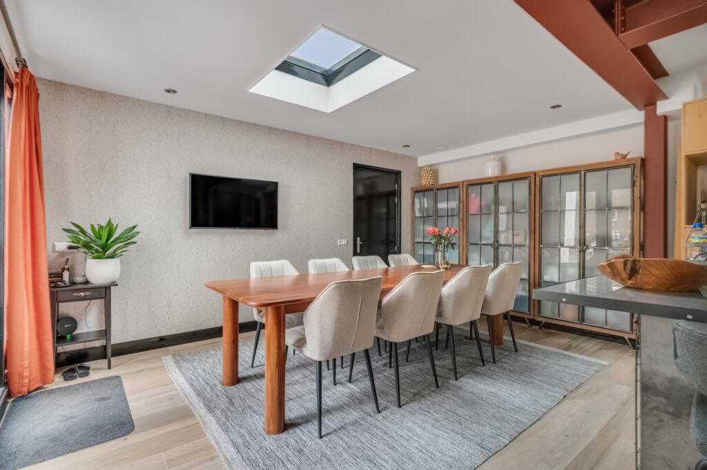 In de ruime eethoek kun je heerlijk eten, dineren en tafelen met kinderen, vrienden en familie.