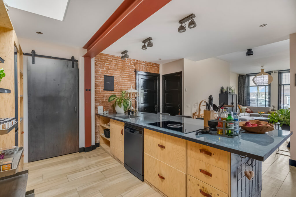 De keuken is voorzien van een inductie kookplaat met geïntegreerde afzuiginstallatie, oven, vaatwasmachine, ( nieuw) fraai aanrechtblad en voldoende bergruimte.
