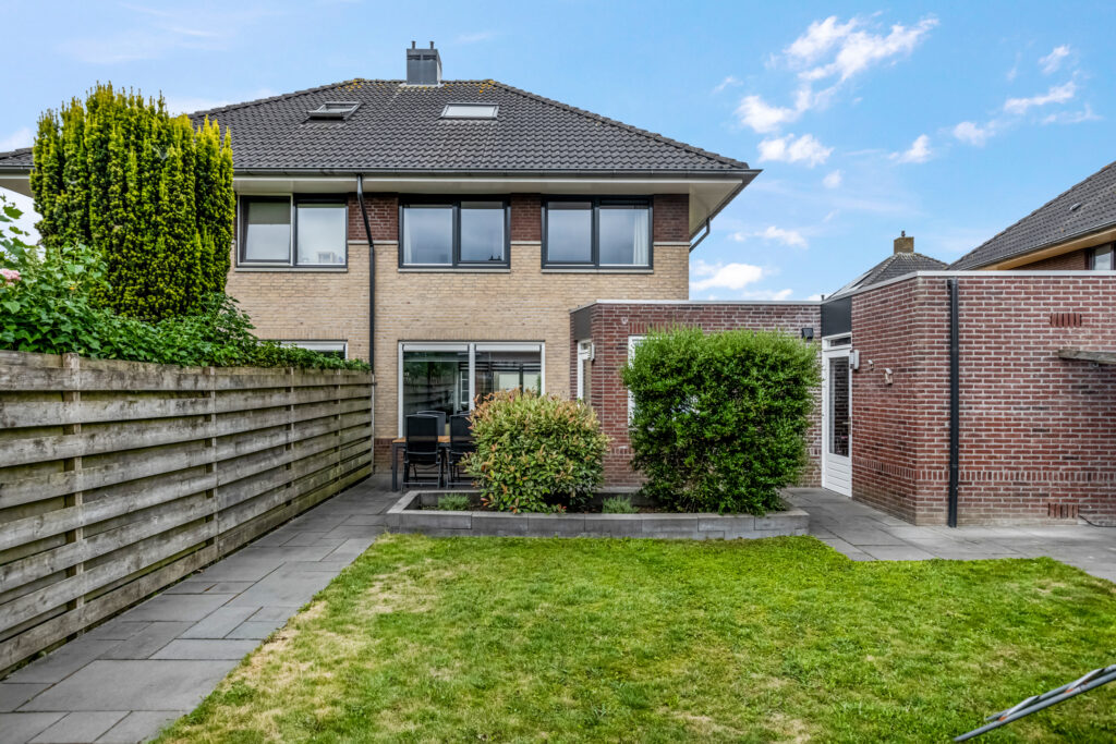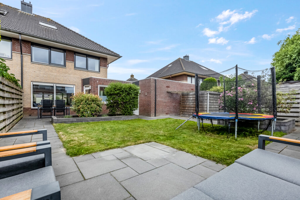 De achtertuin biedt volop privacy en ruimte om te genieten van het buitenleven. Via de achtertuin is de garage te bereiken. Deze garage heeft een loop-/kanteldeur en is voorzien van een buitenkraan en elektra.