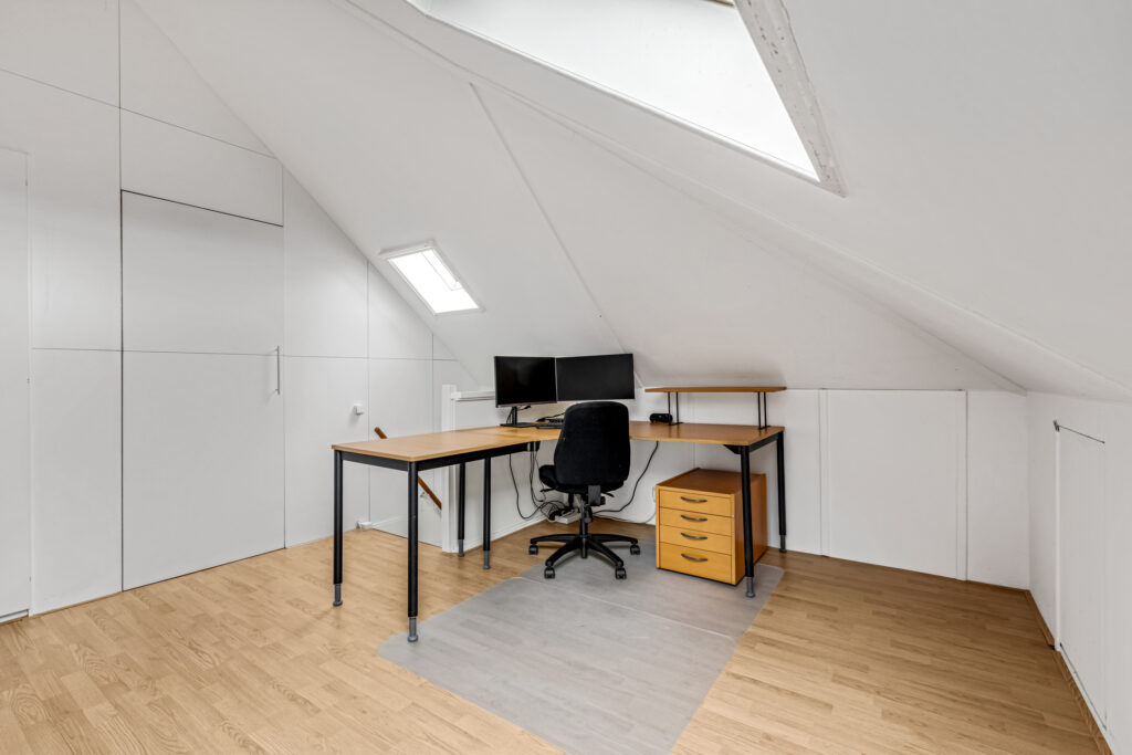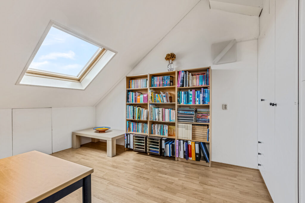 Via een af te sluiten deur kan de 2e verdieping worden bereikt. Deze verdieping kan uitstekend dienst doen als slaapkamer, kantoor of hobbyruimte. Er is een ruimte op deze verdieping gemaakt voor de witgoed en het technische deel (CV en mechanische ventilatie).