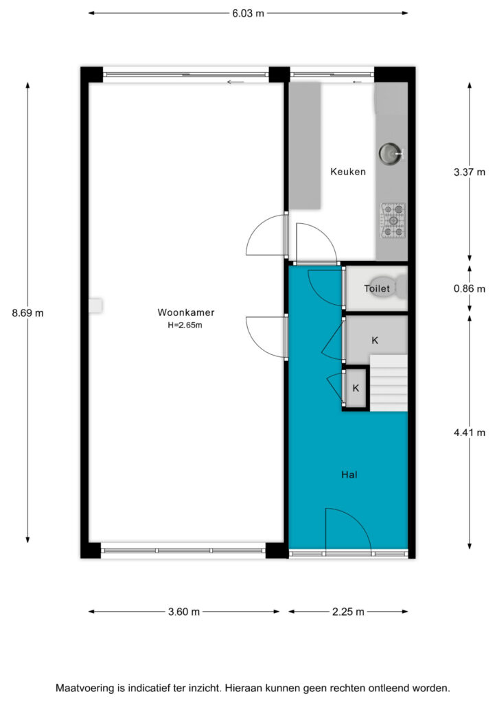 entree, hal, meterkast, toilet, keuken voorzien van 5-pits gaskookplaat, afzuigkap, vaatwasser, koelkast, vriezer en voldoende bergruimte.